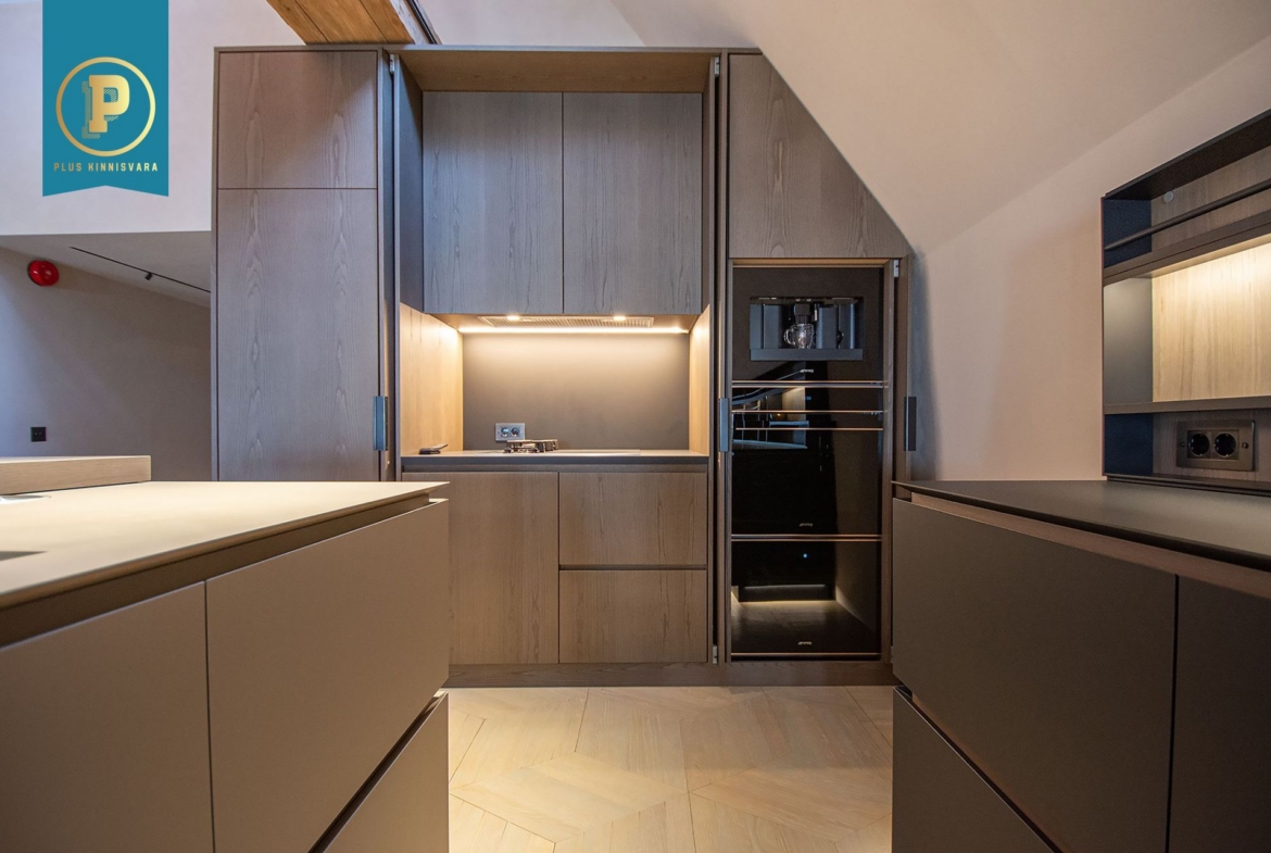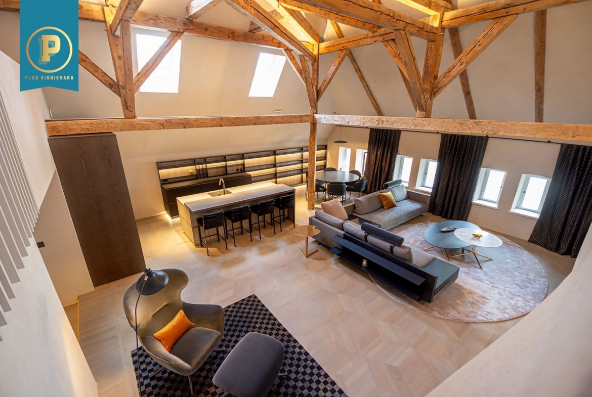 Pakutav kodu laiub ajaloolise hoone kolmandal ja neljandal korrusel. Kõrgeim ja avaraim osa korterist on lausa ca 7 m kõrgune ja pakutav kodu on osaliselt 2-korruseline. Ruumikas ja valgusküllane, avatud planeeringuga elutuba ühendub elegantse köögialaga, luues ideaalse keskkonna meelelahutuseks ja igapäevaeluks. Privaatsed magamistoad, kus mõlemas on oma olmeblokk, millest peamises on lausa väiksem spaaala. Pakutava kodu iga sentimeeter on läbimõeldud ja viimistletud ülima täpsusega, et tagada kodusolijate maksimaalne mugavus. Pakutav kodu üüritakse koos kogu piltidel näha oleva mööbli-, tehnika- ja sisustuselementidega.