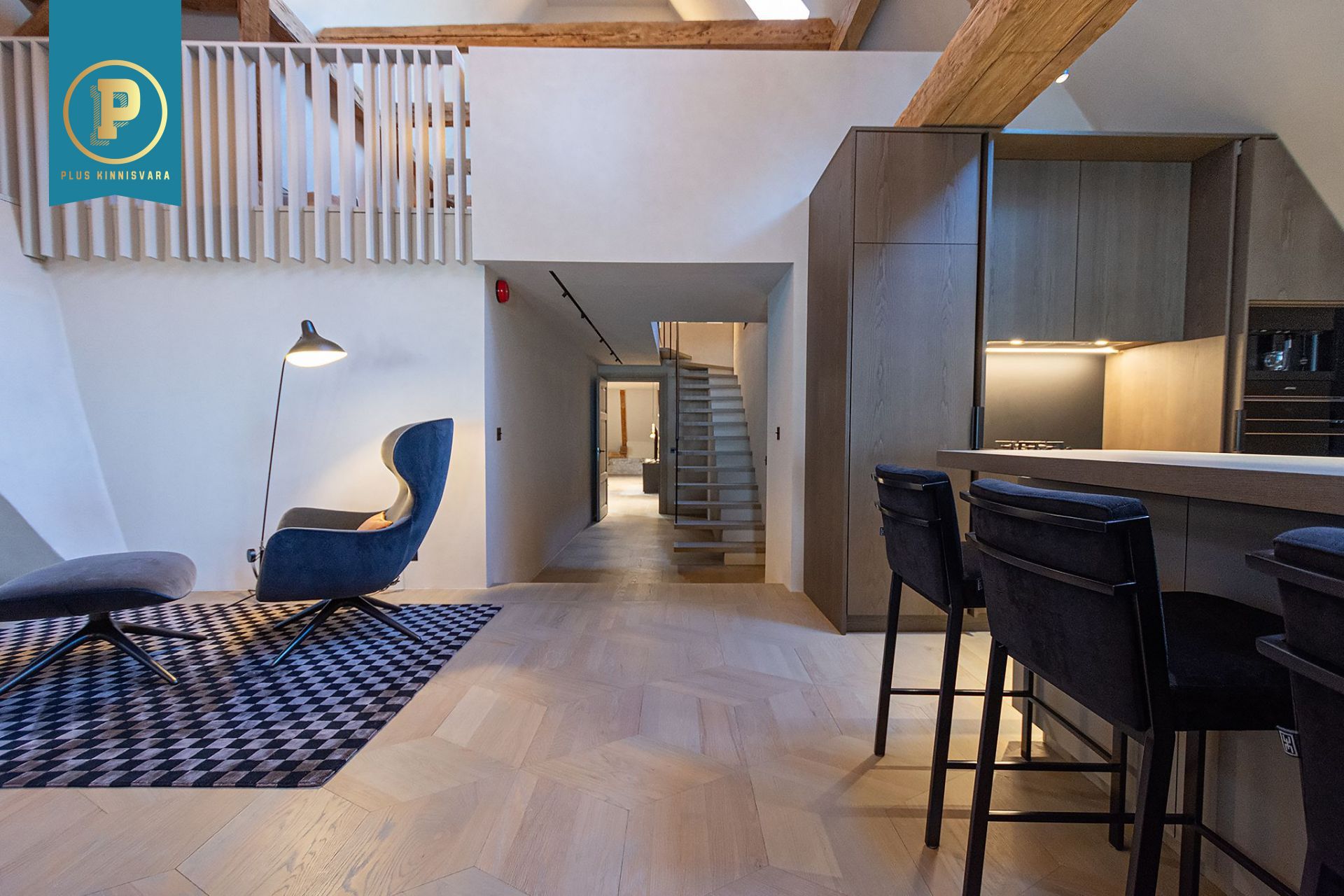 Pakutav kodu laiub ajaloolise hoone kolmandal ja neljandal korrusel. Kõrgeim ja avaraim osa korterist on lausa ca 7 m kõrgune ja pakutav kodu on osaliselt 2-korruseline. Ruumikas ja valgusküllane, avatud planeeringuga elutuba ühendub elegantse köögialaga, luues ideaalse keskkonna meelelahutuseks ja igapäevaeluks. Privaatsed magamistoad, kus mõlemas on oma olmeblokk, millest peamises on lausa väiksem spaaala. Pakutava kodu iga sentimeeter on läbimõeldud ja viimistletud ülima täpsusega, et tagada kodusolijate maksimaalne mugavus. Pakutav kodu müüakse koos kogu piltidel näha oleva mööbli-, tehnika- ja sisustuselementidega.