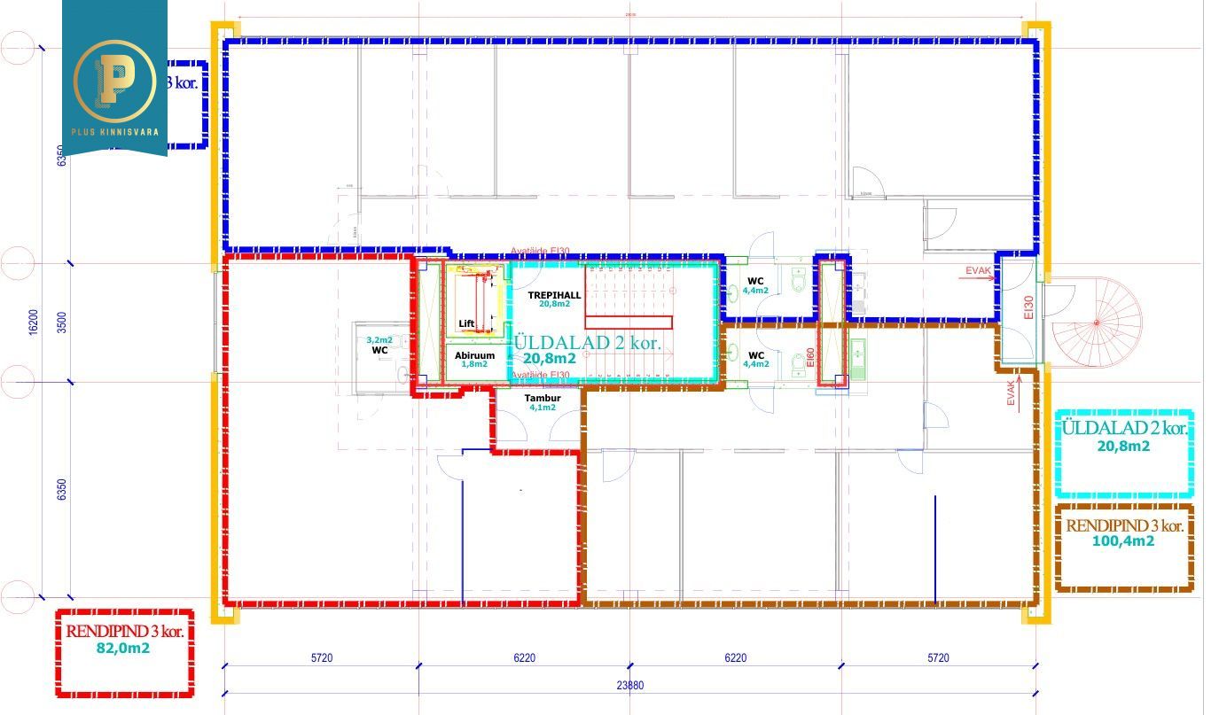 Äripind koosneb avatud büroost ning ühest klaasidega eraldatud kabinetist/nõupidamisruumist ning lisaks on olemas köögunurk ja tualett. Plaan piltide seas olemas.