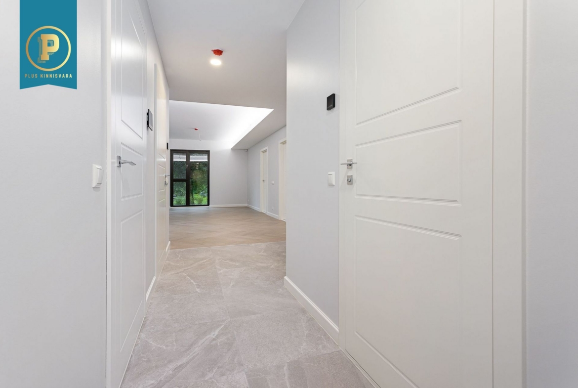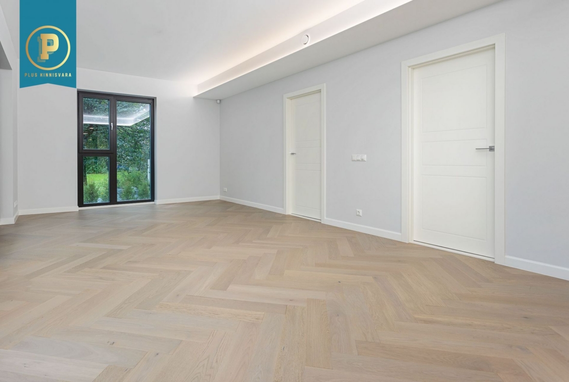 Siseviimistlus on lahendatud heledates toonides ning kontrasti lisavad tumedad aknaraamid. Kasutatud on väga kvaliteetseid materjale ja santehinikat. Põrandaid katab hele tammepuidust kalasabaparkett ning seinad on värvitud. Esiku ja kööginurga põrand ning vannitoa ja tualeti põrandad ja seinad on plaaditud. Valguslahendusena on kasutatud energiasäästlikke LED valgusteid ning hubasust lisavad timmerdatavad kariisivalgustid. l