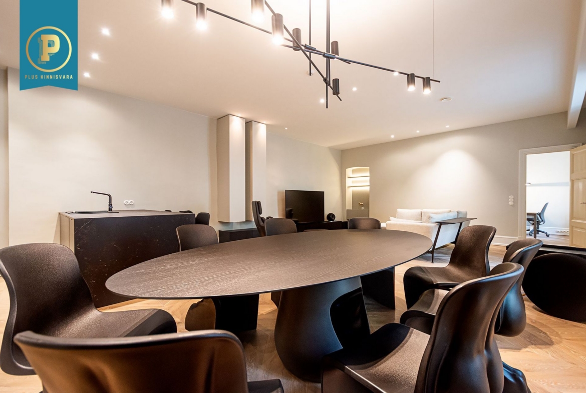 koridori peal on lisaks veel üks WC / duširuum. Mööda koridori paremale liikudes jõuab kööki / elutuppa / koosolekuruumi. Stiilne ja avar, üle 3 meetriste lagedega, ruum on ühednatud modernse köögiga. Kui teed köögis süüa, siis on uksed lahti ja olemasolev köögitehnika jm näha ja kasutusvalmis. Kui enam ei tee süüa, siis võid lükandustega kapid kinni panna ja kõik mittevajalik jääb peitu.