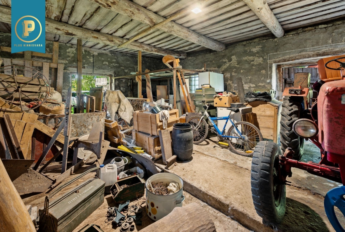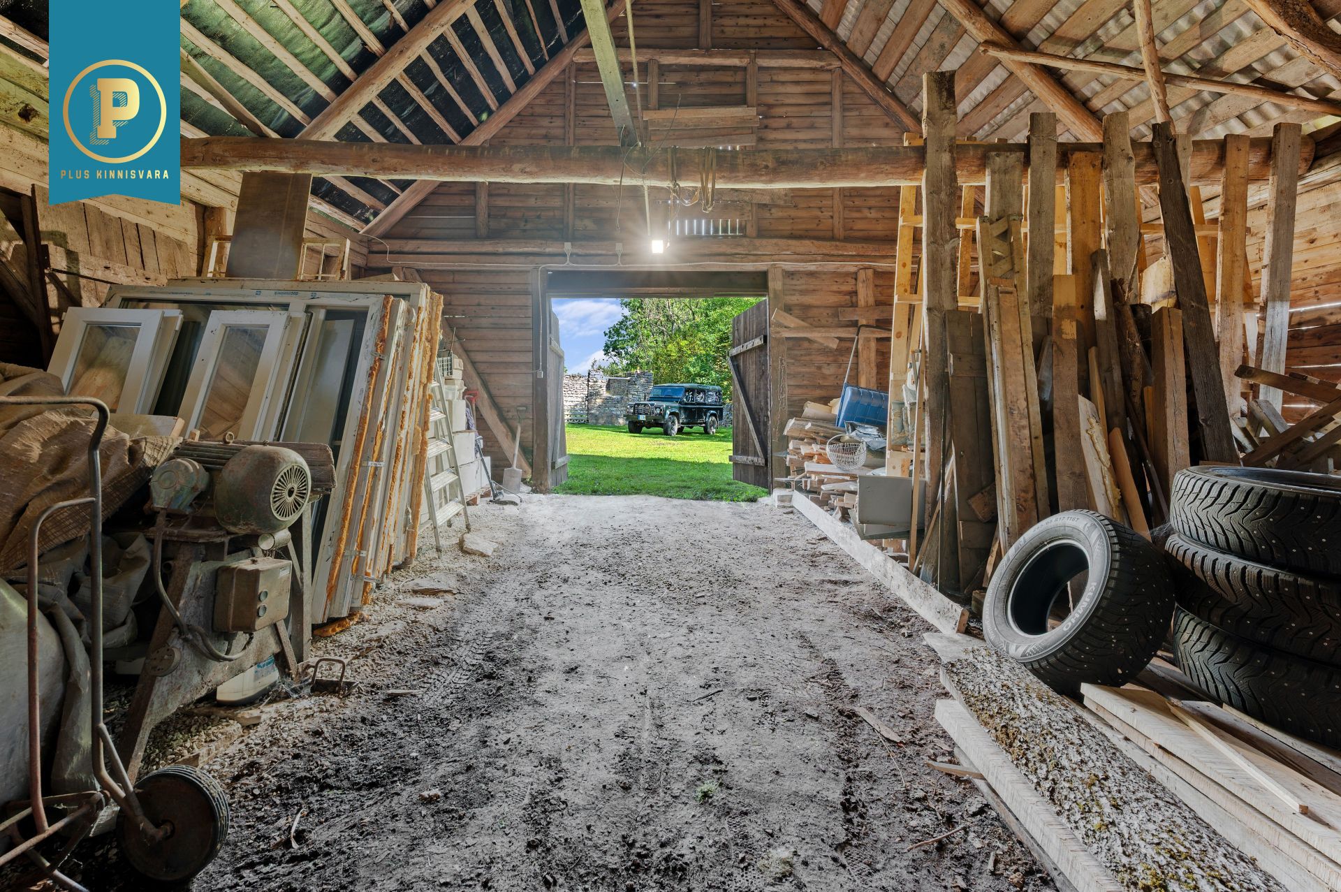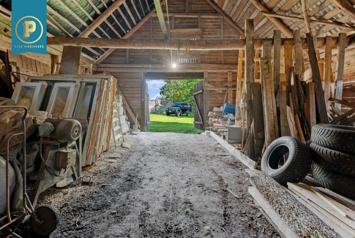 Kuur / laut on ehitusaluse pinnaga ca 200 m2 (+ II korruse katusealune) ja sinna mahuvad ära kõik peremehe traktorid, ehitusmaterjalid, varuosad jmt maal elamiseks vajalikud asjad.