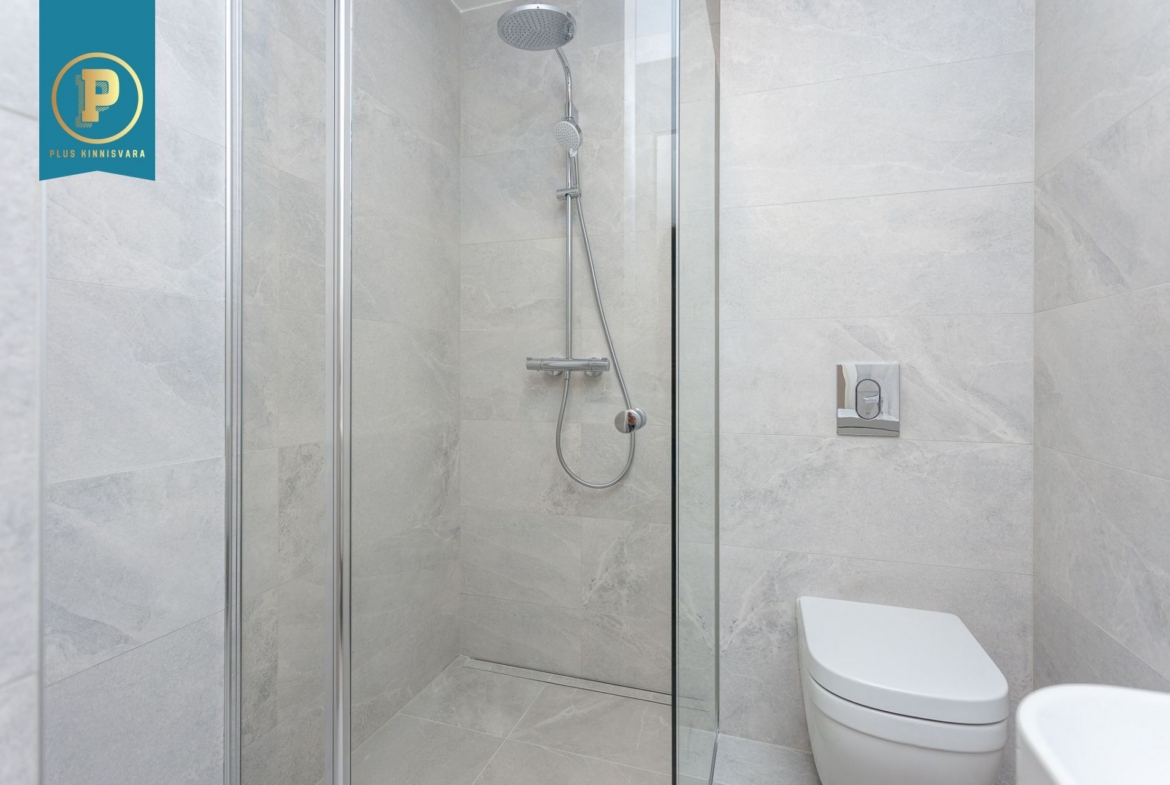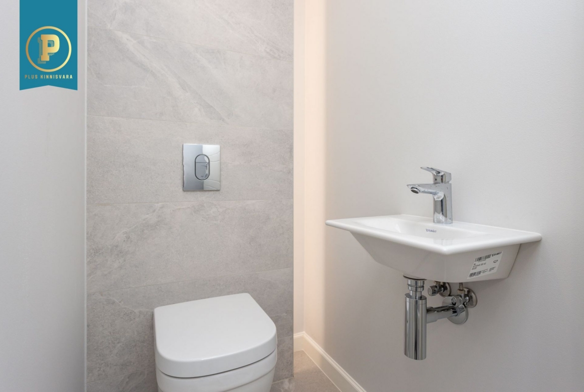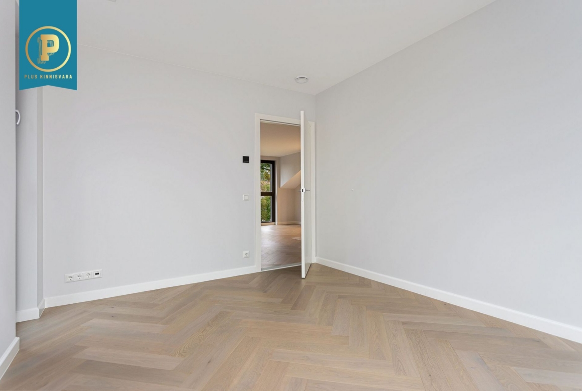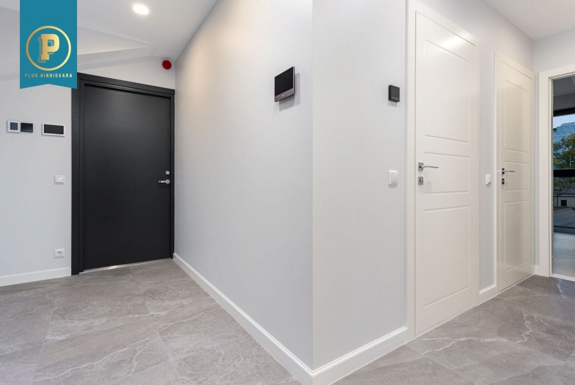 Siseviimistlus on lahendatud heledates toonides ning kontrasti lisavad tumedad aknaraamid. Kasutatud on väga kvaliteetseid materjale ja santehinikat. Põrandaid katab hele tammepuidust kalasabaparkett ning seinad on värvitud. Köögi põrand ning vannitoa ja tualeti põrand ja seinad on plaaditud.