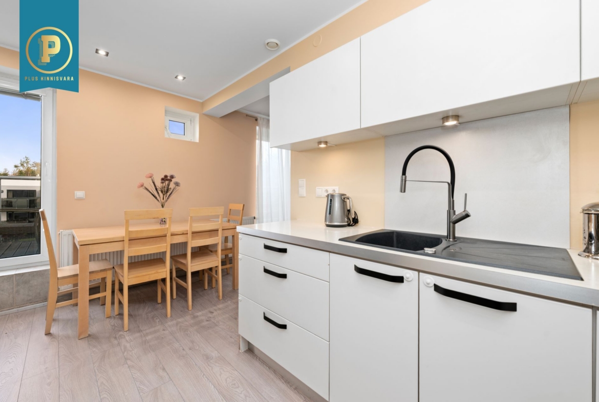Pakutav kodu asub 4-kordse maja viimasel korrusel. Korteri koosseisu kuuluvad suure garderoobikapiga esik, magamistuba, vannituba, kaminaga elutuba, pooleldi avatud köök, kontorinurk ning avar terrass (11,3 m2). Korter on hiljuti läbinud värskenduskuuri, on täielikult möbleeritud ja antakse üürile kogu piltidel oleva sisustusega.