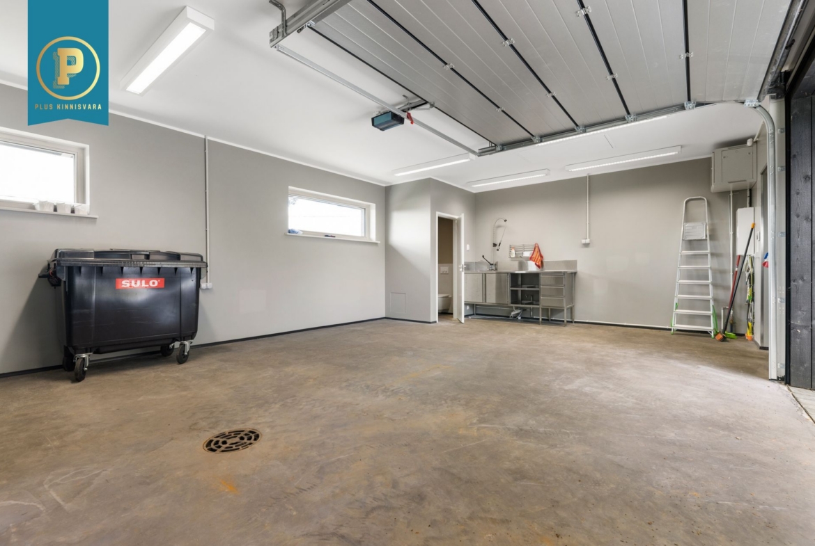 Garaažis on ruumi kahele autole, lisaks on seal olemas tualett ja roostevabast terasest töölaud. Põrandasse on paigaldatud veeküttetorustik, millele saab soovi korral lisada õhk-vesi soojuspumba. Hetkel on garaaž köetav õhk-õhk soojuspumbaga. Tänu oma iseseisvale planeeringule sobib see ruum ka hobide harrastamiseks või väikse töökoja rajamiseks.
