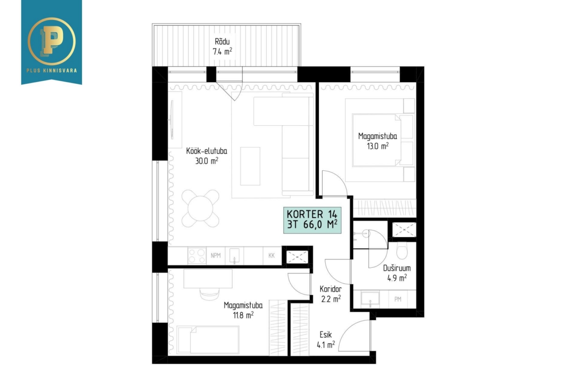 Korter nr 14 on avara ja läbimõeldud planeeringuga 3-toaline kodu, kus on esik, kaks magamistuba, duširuum/WC ning avatud köögiga elutuba. Elutoast pääseb 7,3 m2 suurusele rõdule – täiuslik koht hommikukohviks või õhtuseks lõõgastumiseks.