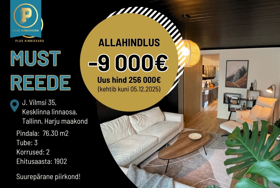 TURUL UUS! Eriline, läbi kahe korruse paiknev korter Kadriorus. Musta reede HINNASOODUSTUS -9 000€! Pakkumine kehtib vaid kuni 05.12.2025.a.