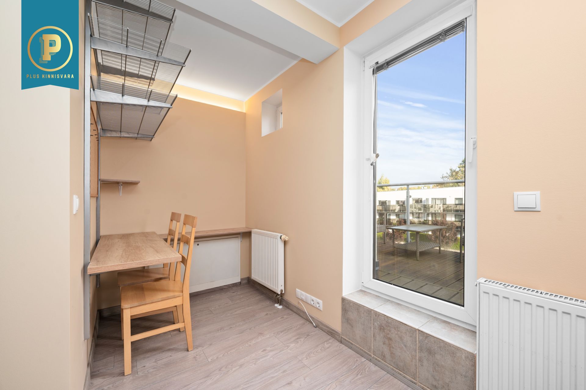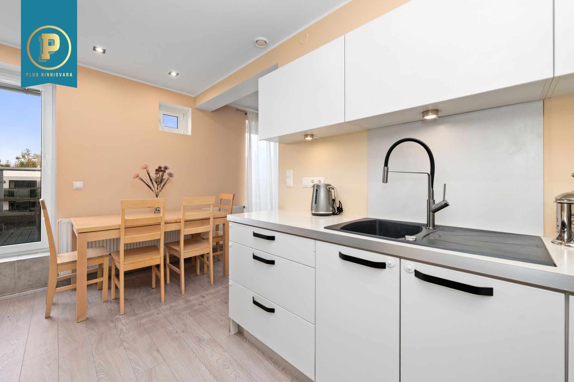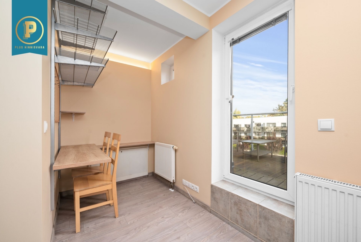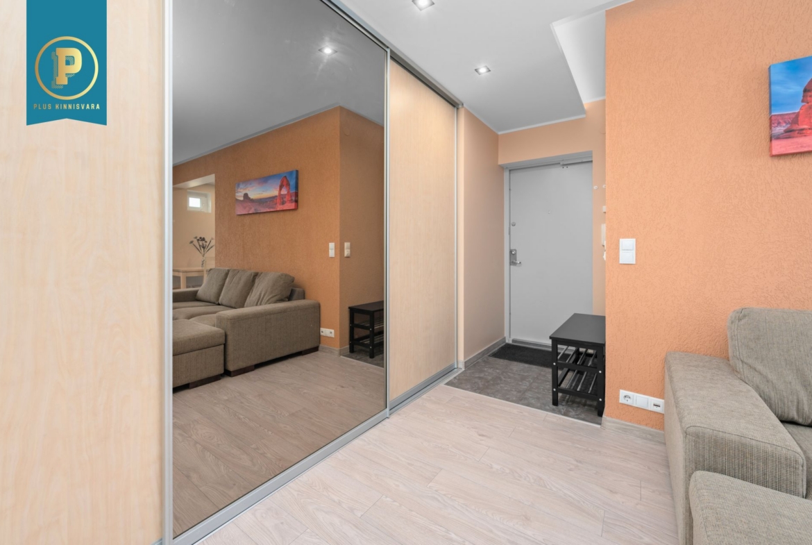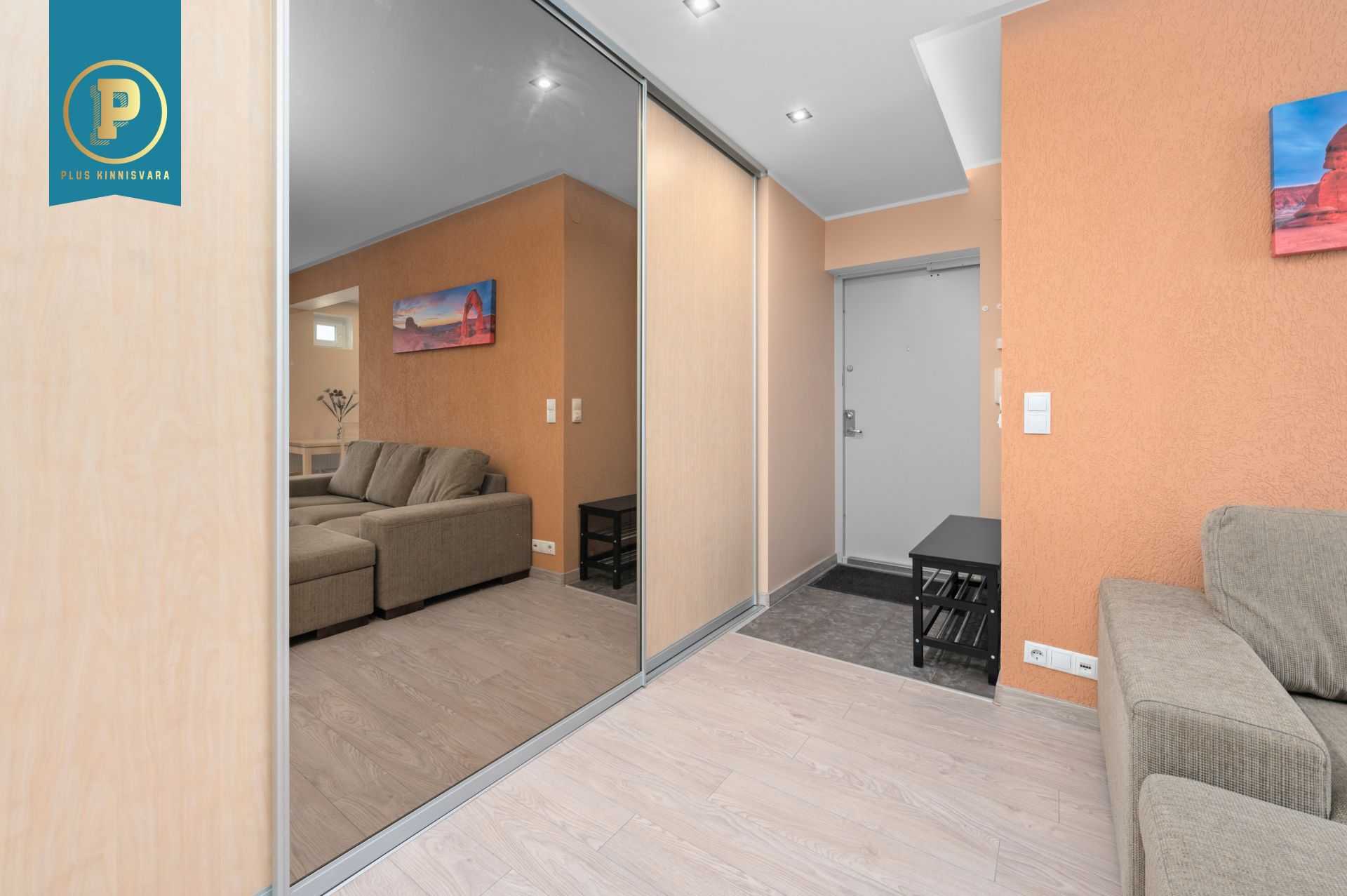 Pakutav kodu asub 4-kordse maja viimasel korrusel. Korteri koosseisu kuuluvad suure garderoobikapiga esik, magamistuba, vannituba, kaminaga elutuba, pooleldi avatud köök, kontorinurk ning avar terrass (11,3 m2). Korter on hiljuti läbinud värskenduskuuri, on täielikult möbleeritud ja antakse üürile kogu piltidel oleva sisustusega.
