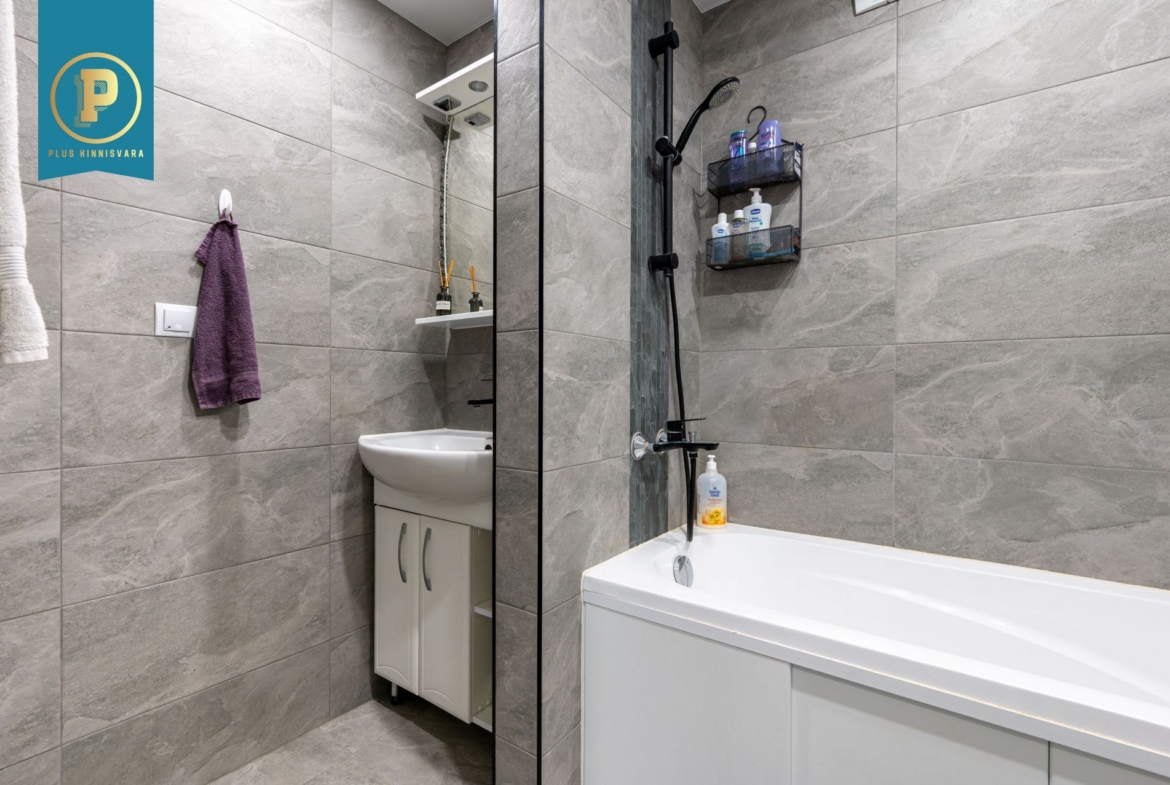 Korter on u 2.5 aastat tagasi kapitaalselt renoveeritud. Tubade põrandaid katab laminaatparkett, esiku, vannitoa ja tualeti põrandad on plaaditud. Seinad on värvitud heledates toonides.