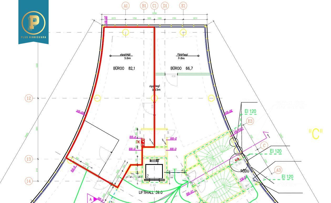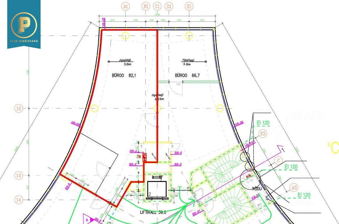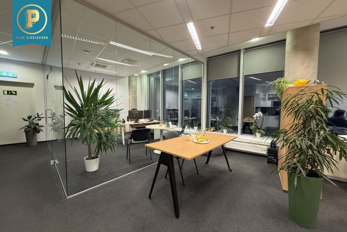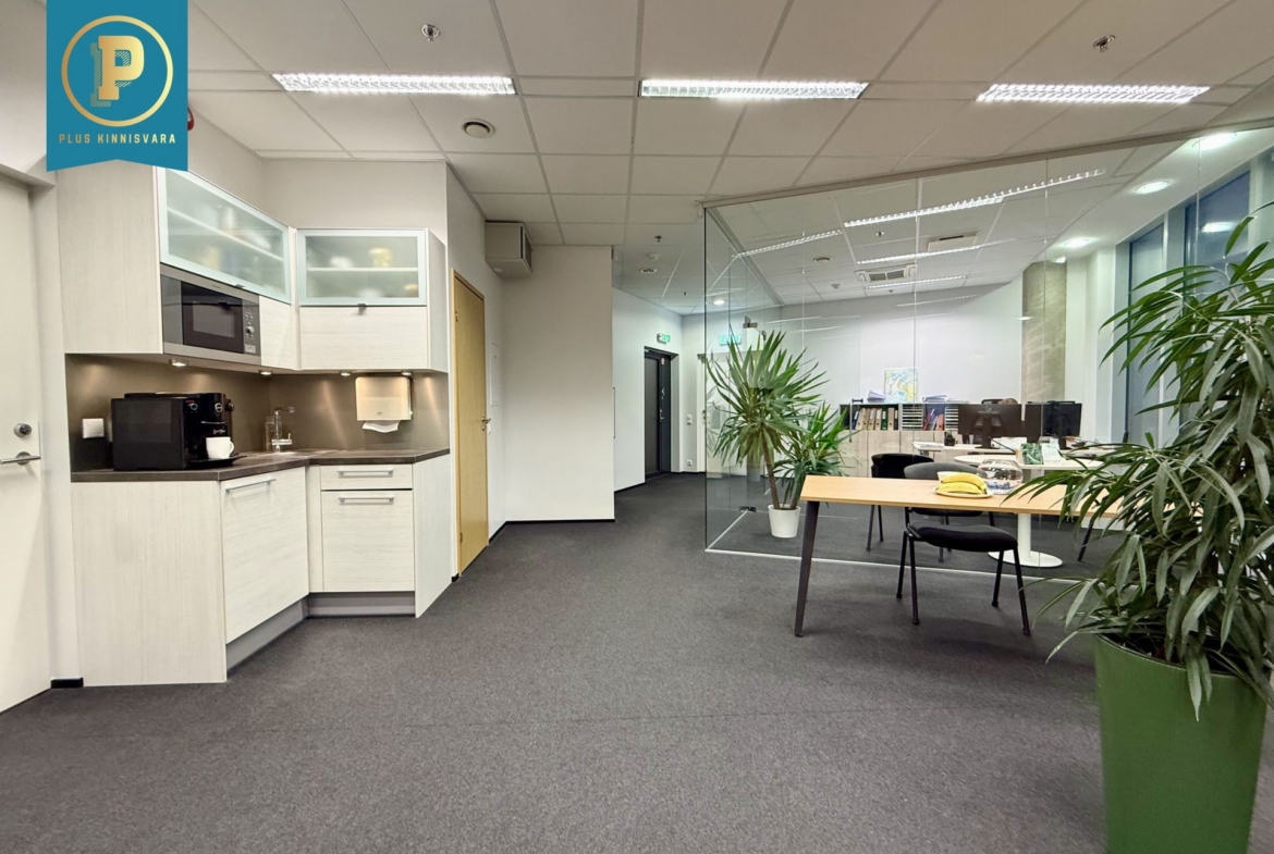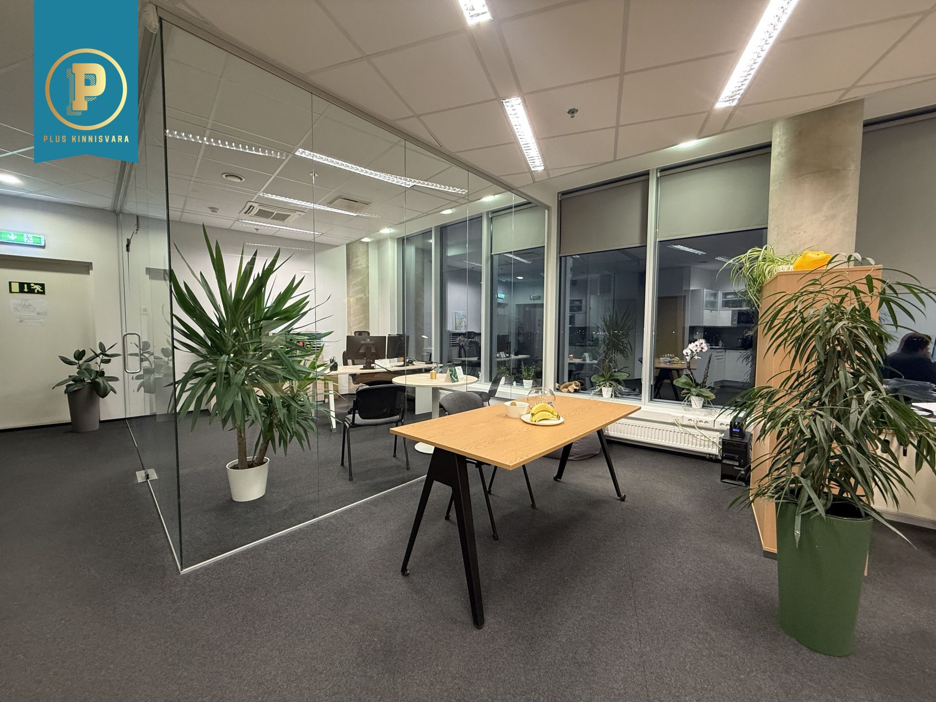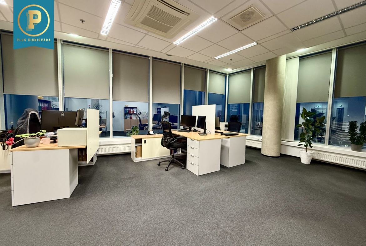 Pakutav büroo asub 10.korrusel ning on äärmiselt valgusküllane ning imeliste vaadetega nii mere kui linna poole. Ruum on avatud planeeringuga, kus üks osa on eraldatud klaasvaheseintega ning pinnal on olemas kööginurk ja tualett. Piltide seas plaan, kus pakutav büroo märgitud punasega.