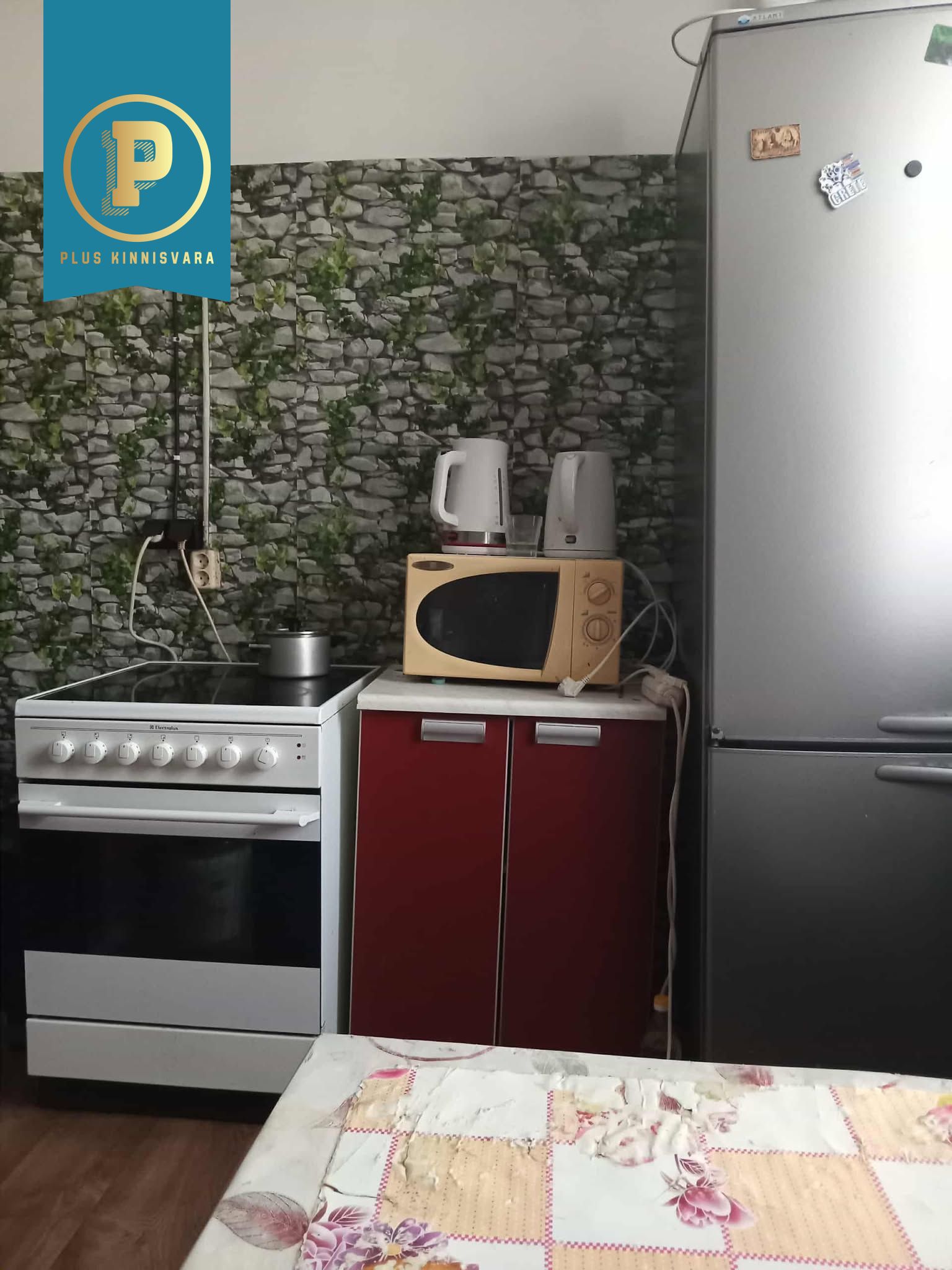 Korteris on köögikapid, keraamiline pliit, külmkapp ja pesumasin.