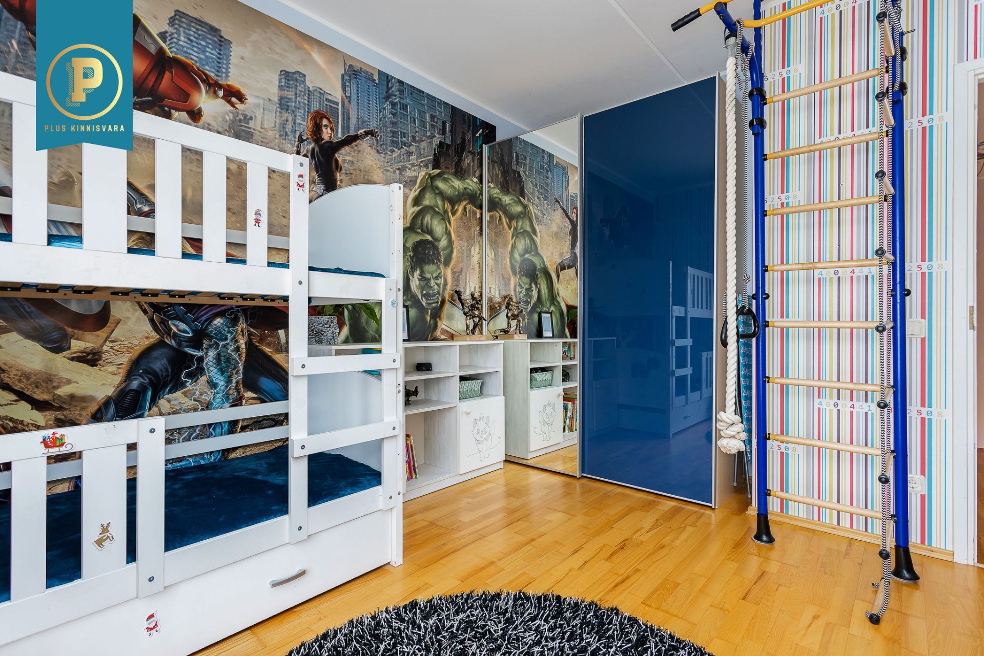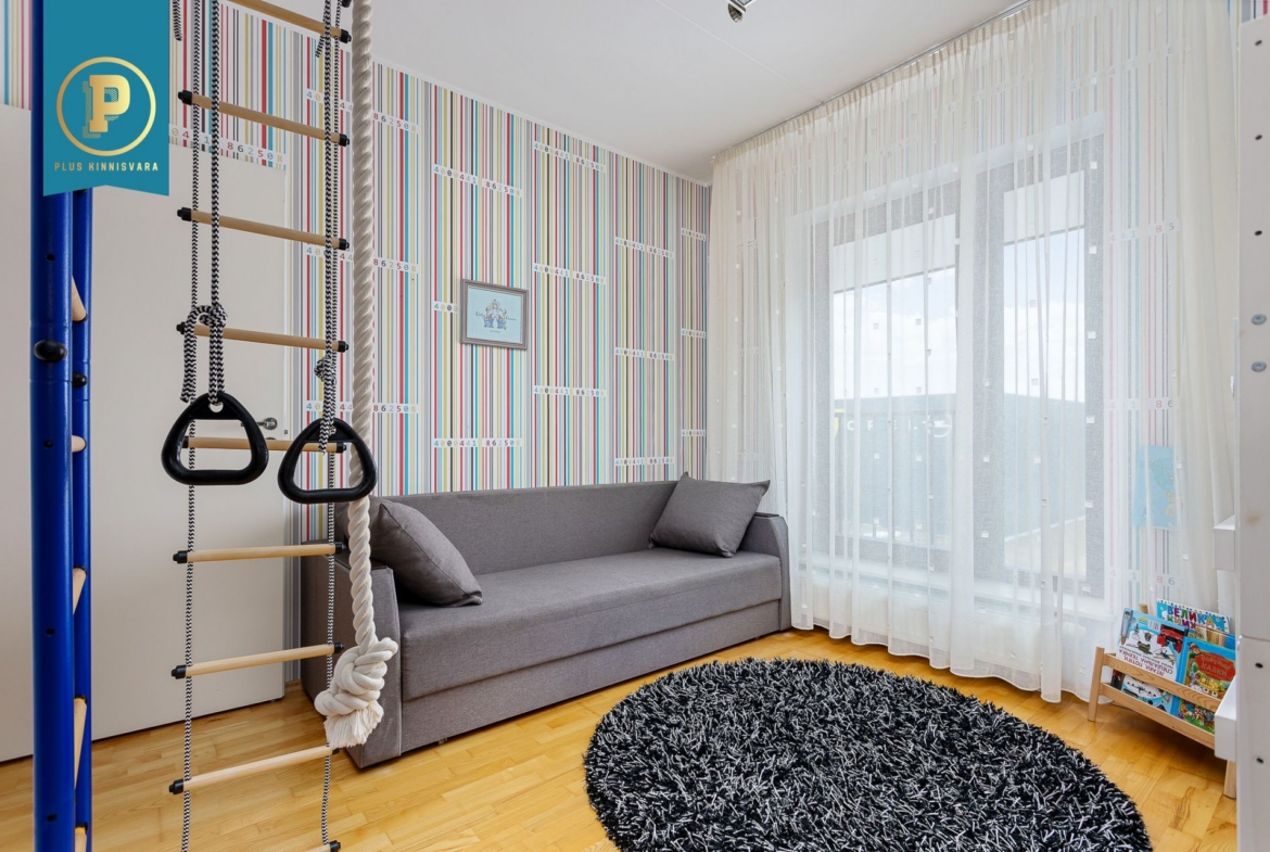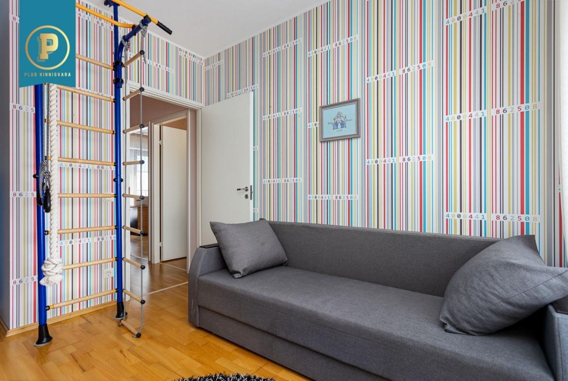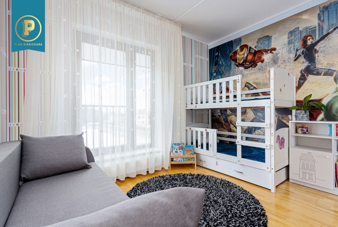 Väiksem magamistuba, mis on hetkel kasutuses lastetoana, on piisavalt suur, et mahutada ära kahe lapse nari ning riidekapi ja samas pakkuda mõnusalt mänguruumi.