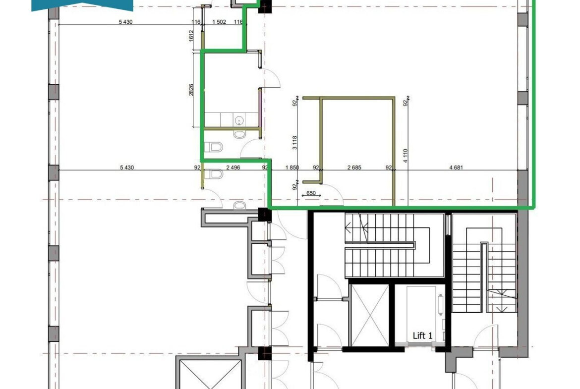 Hoone kaheksandal korrusel asuv büroopind koosneb järgmistest osadest: