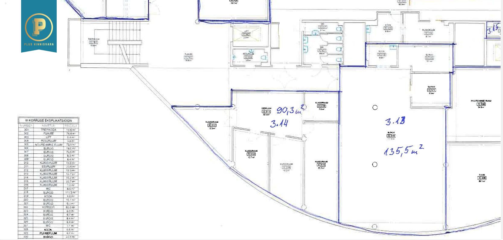 Kolmandal korrusel asuv büroopind koosneb järgmistest osadest: