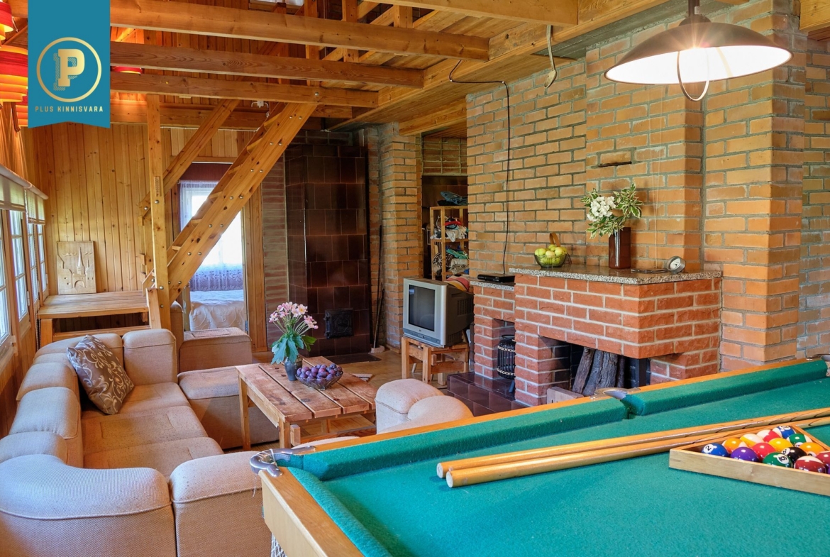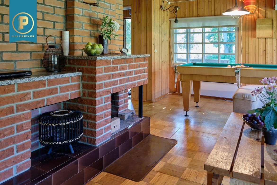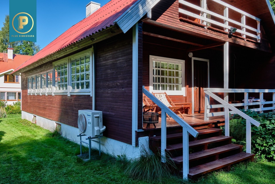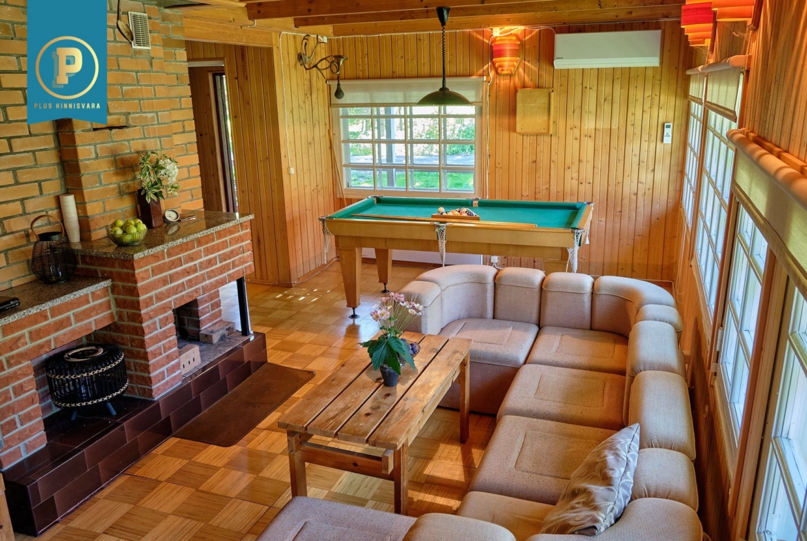 Majas on kahel korrusel kokku 4 heas suuruses magamistuba, avatud ja kõrge aatriumiga elutuba, köök, duširuumiga saun ja perenaise poolt aastaid hooldatud aed. Lisaks maja algusaegsetele kütteseadmetele (köögis pliit, kamin) on ka tänapäevane õhk-õhk soojuspump (Panasonic), mis kütab majapidamise kiiresti soojaks ning lisaks on tubades eraldi elektriradiaatorid. WC on küll toas, aga nn kuivkäimla (ilma veeta, aga ventileeritav). Maja all on täissuuruses garaaž, töötuba, kuur, …