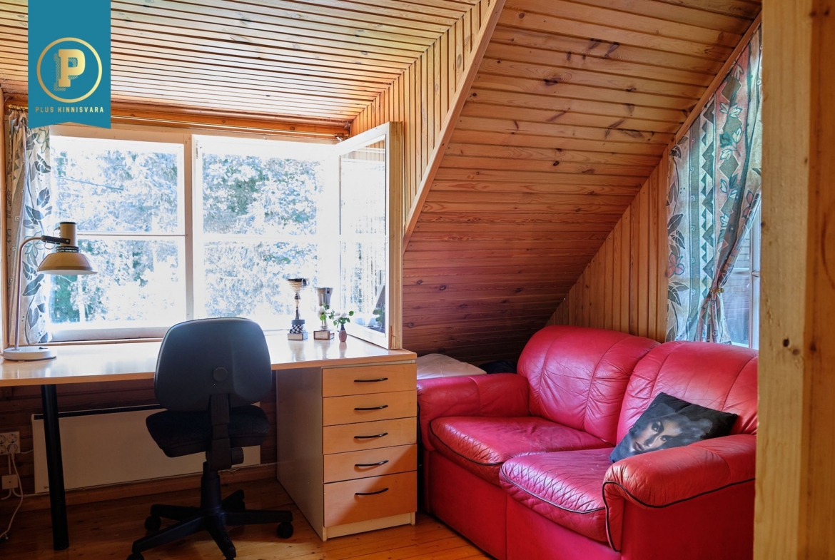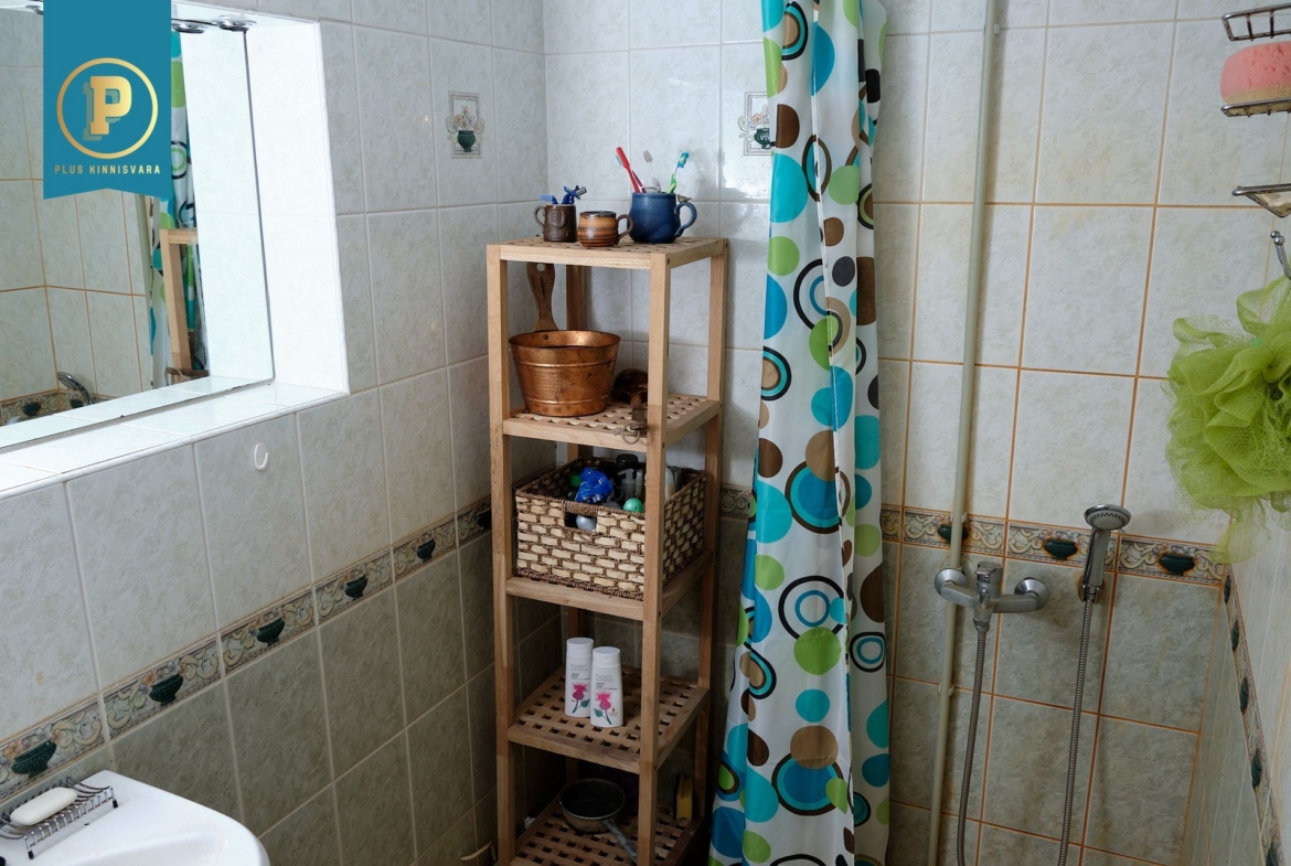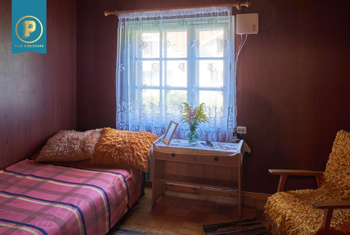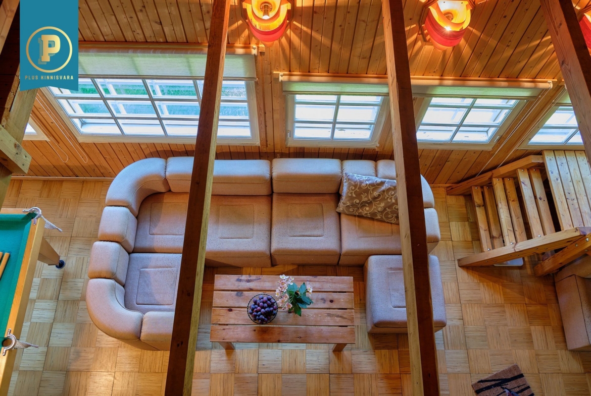 Majas on kahel korrusel kokku 4 heas suuruses magamistuba, avatud ja kõrge aatriumiga elutuba, köök, duširuumiga saun ja perenaise poolt aastaid hooldatud aed. Lisaks maja algusaegsetele kütteseadmetele (köögis pliit, kamin) on ka tänapäevane õhk-õhk soojuspump (Panasonic), mis kütab majapidamise kiiresti soojaks ning lisaks on tubades eraldi elektriradiaatorid. WC on küll toas, aga nn kuivkäimla (ilma veeta, aga ventileeritav). Maja all on täissuuruses garaaž, töötuba, kuur, …