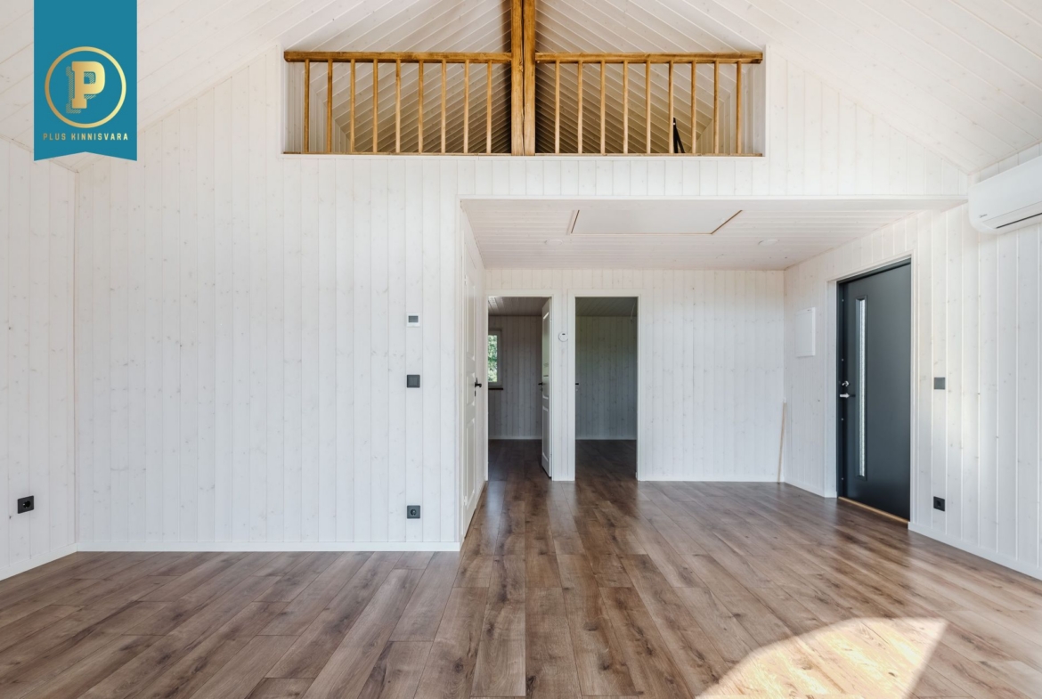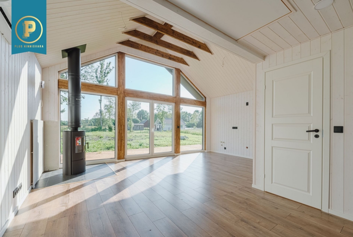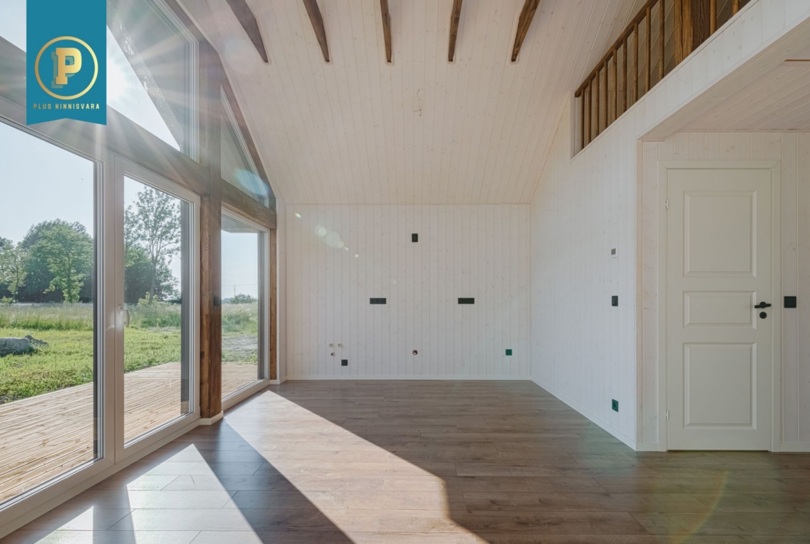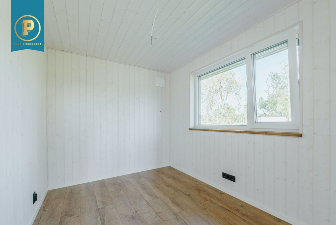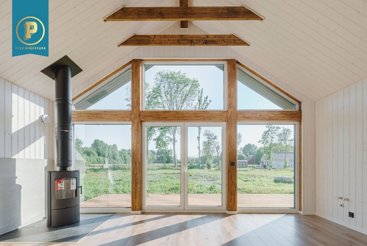 Pakutav maja koosneb kahest hea suurusega magamistoast, WC / duširuumist. Lisaks teeb eriliseks pakutava maja pea tervet otsaseina katvad aknad ja avara aatriumiga elutuba / köök.