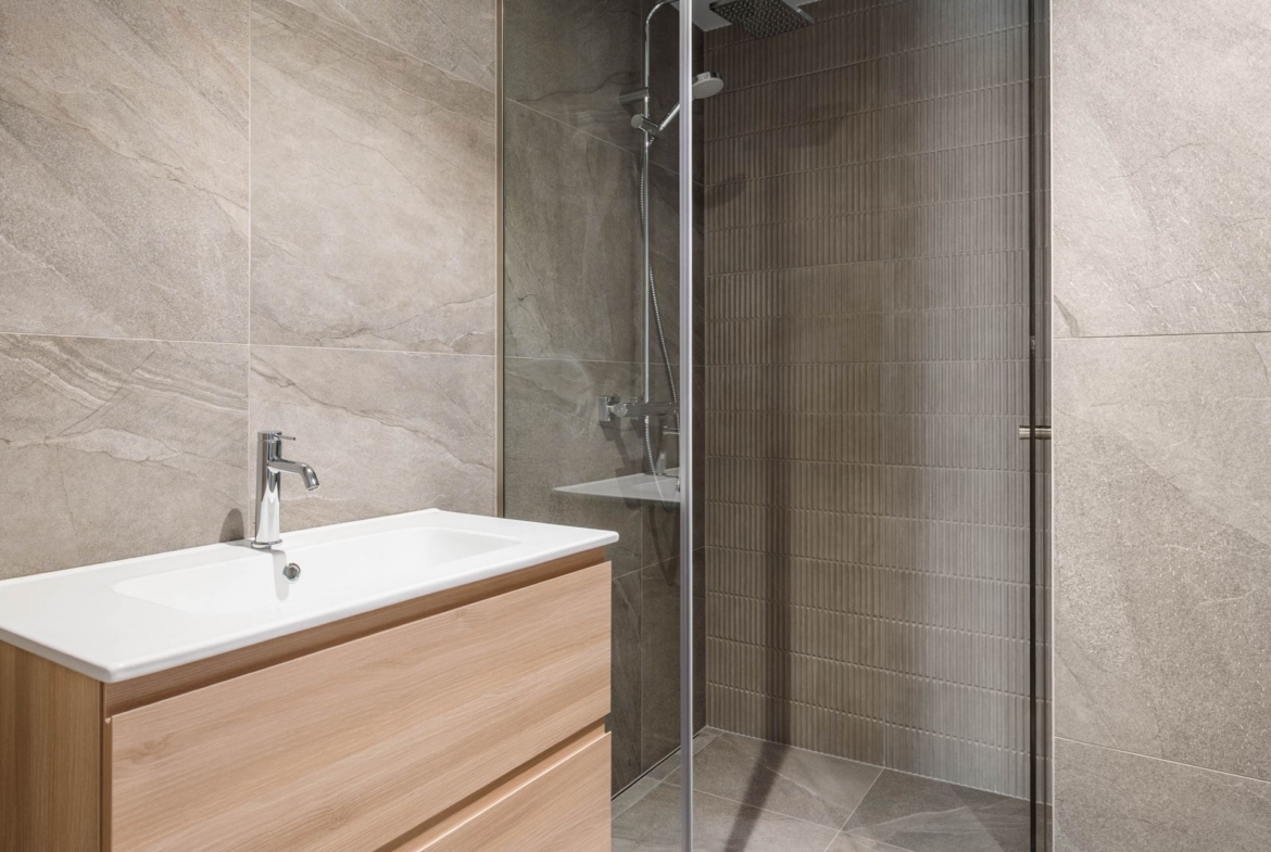 Siseviimistluses on kasutatud naturaalset tammeparketti, mis annab ruumidele sooja ja elegantse tunde. Seinad on värvitud heledates ja rahulikes toonides, mis loovad avara ja valge atmosfääri. Vannitubade seinad ja põrandad ning esiku põrand on plaaditud.
