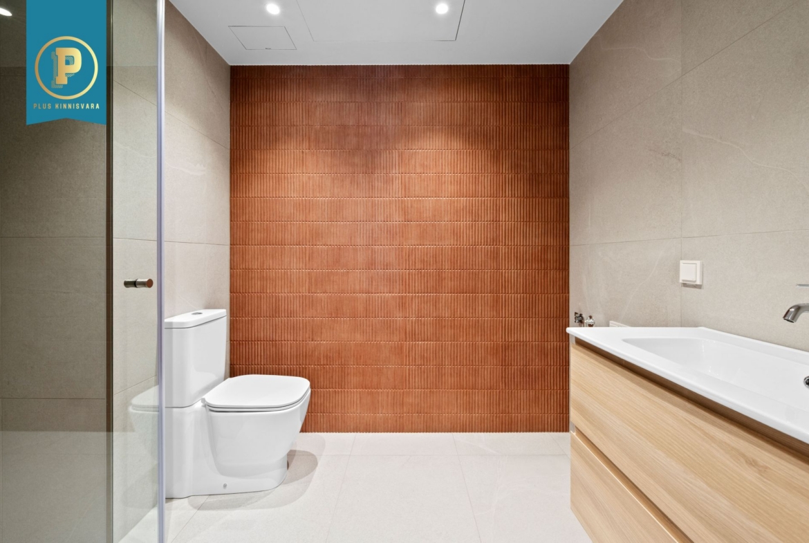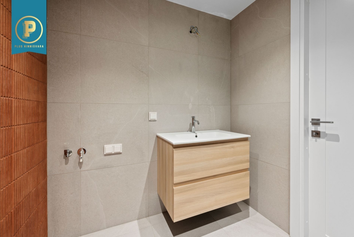 Siseviimistluses on kasutatud naturaalset tammeparketti, mis annab ruumidele sooja ja elegantse tunde. Seinad on värvitud heledates ja rahulikes toonides, mis loovad avara ja valge atmosfääri. Vannitoas on kasutatud aktsendiks terrakotaefektiga plaati.