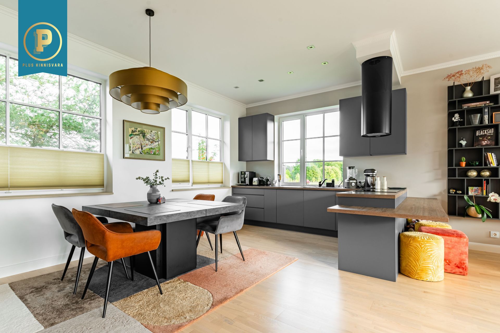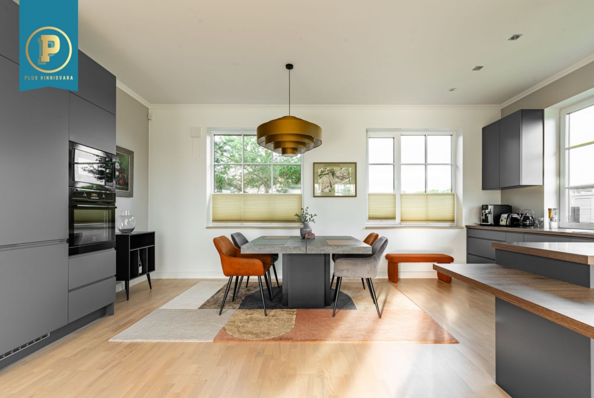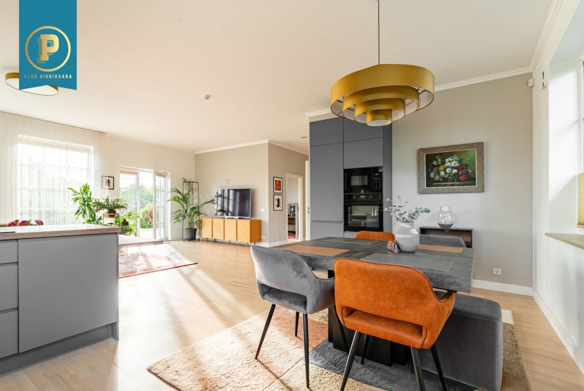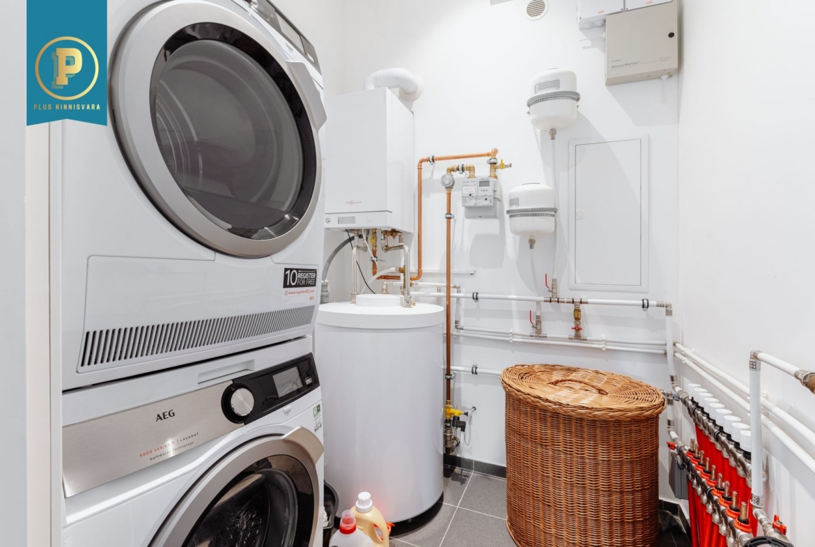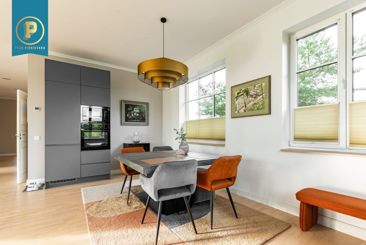 Köögis on kõrgekvaliteetne mööbel koos Electrolux köögitehnika (integreeritud külmik, ahi, induktsioonpliit, lai nõudepesumasin, mikrolaineahi) ja Franke sanitaartehnikaga.
