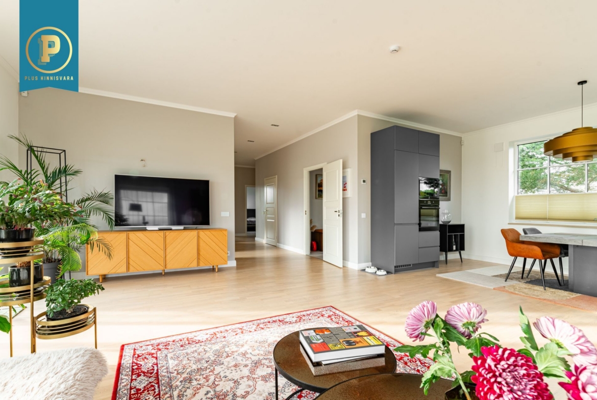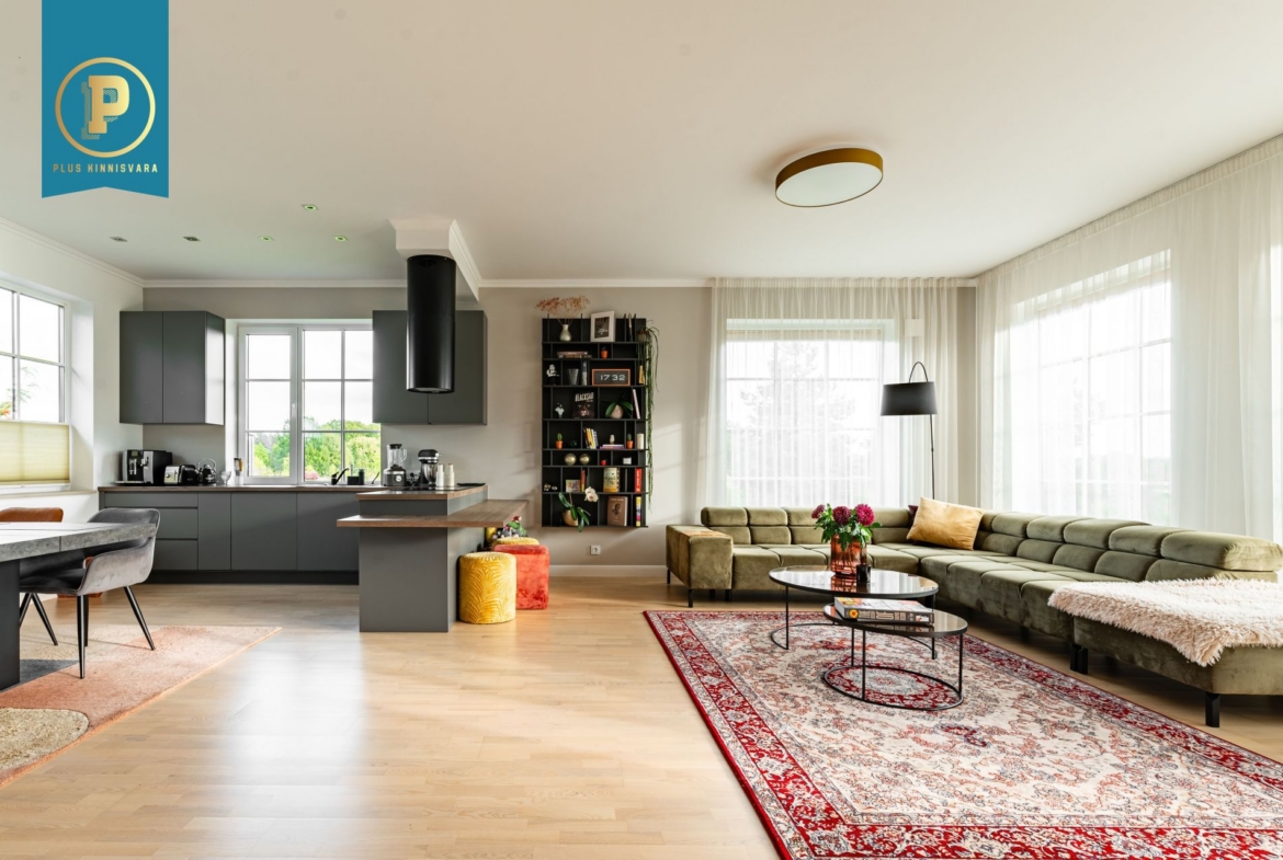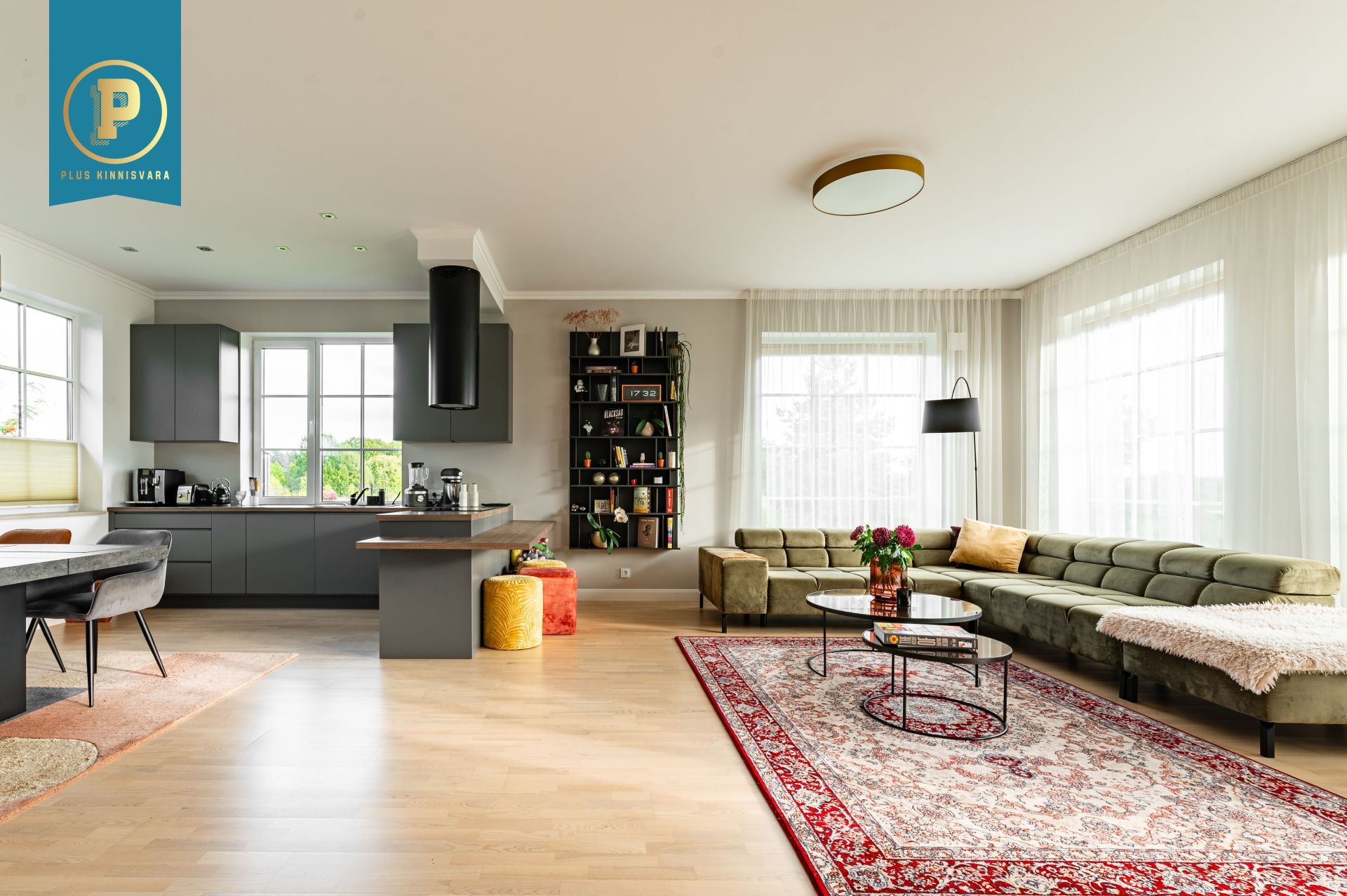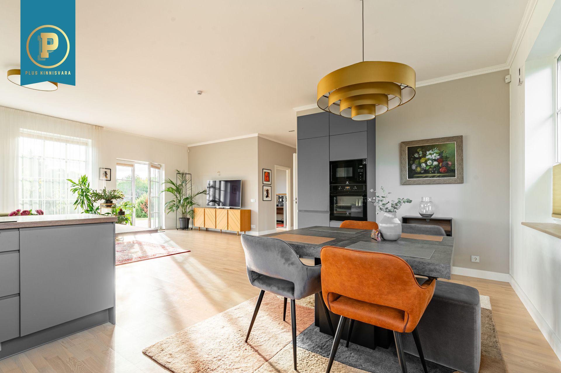 Köögis on kõrgekvaliteetne mööbel koos Electrolux köögitehnika (integreeritud külmik, ahi, induktsioonpliit, lai nõudepesumasin, mikrolaineahi) ja Franke sanitaartehnikaga.