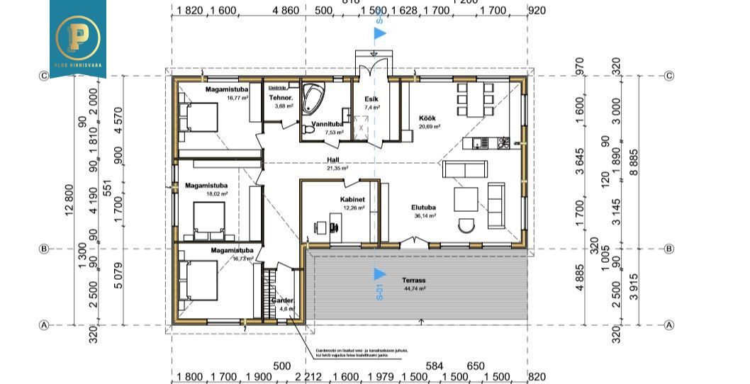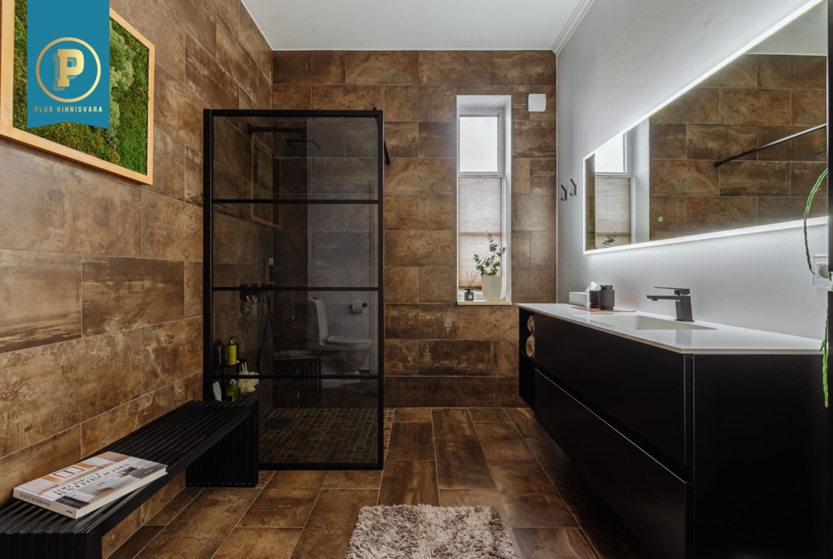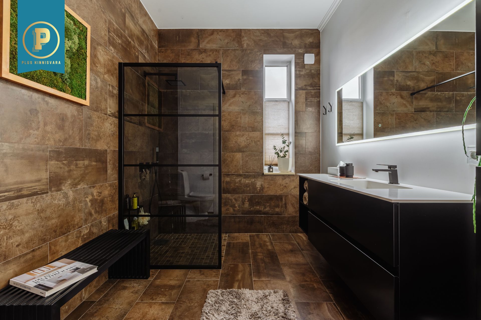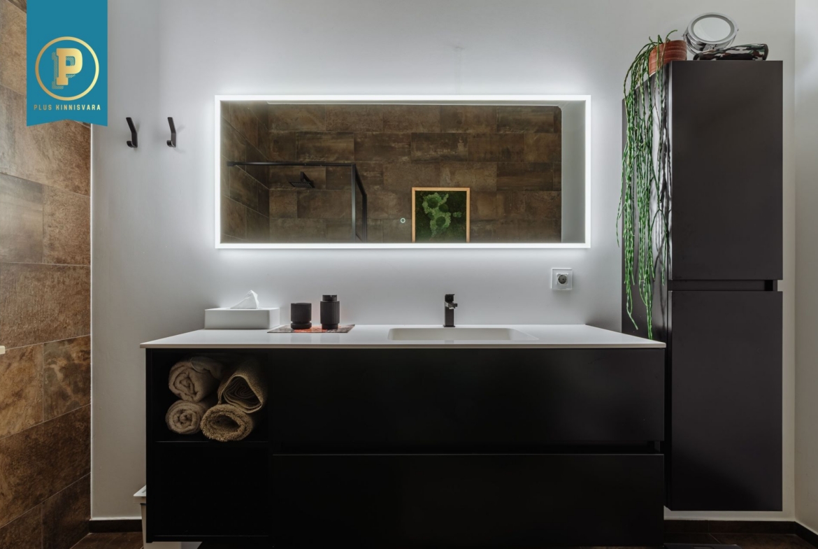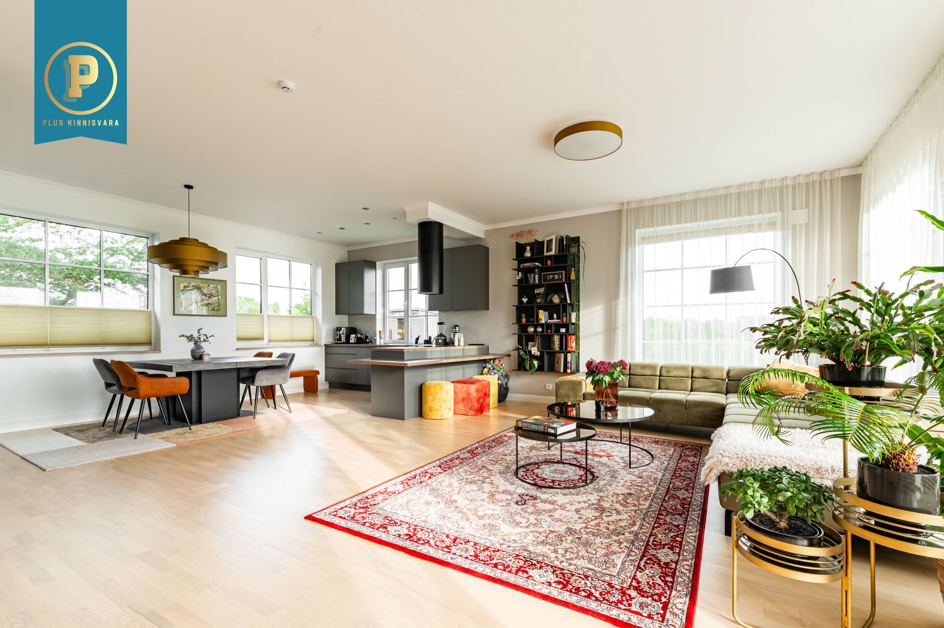 Köögis on kõrgekvaliteetne mööbel koos Electrolux köögitehnika (integreeritud külmik, ahi, induktsioonpliit, lai nõudepesumasin, mikrolaineahi) ja Franke sanitaartehnikaga.