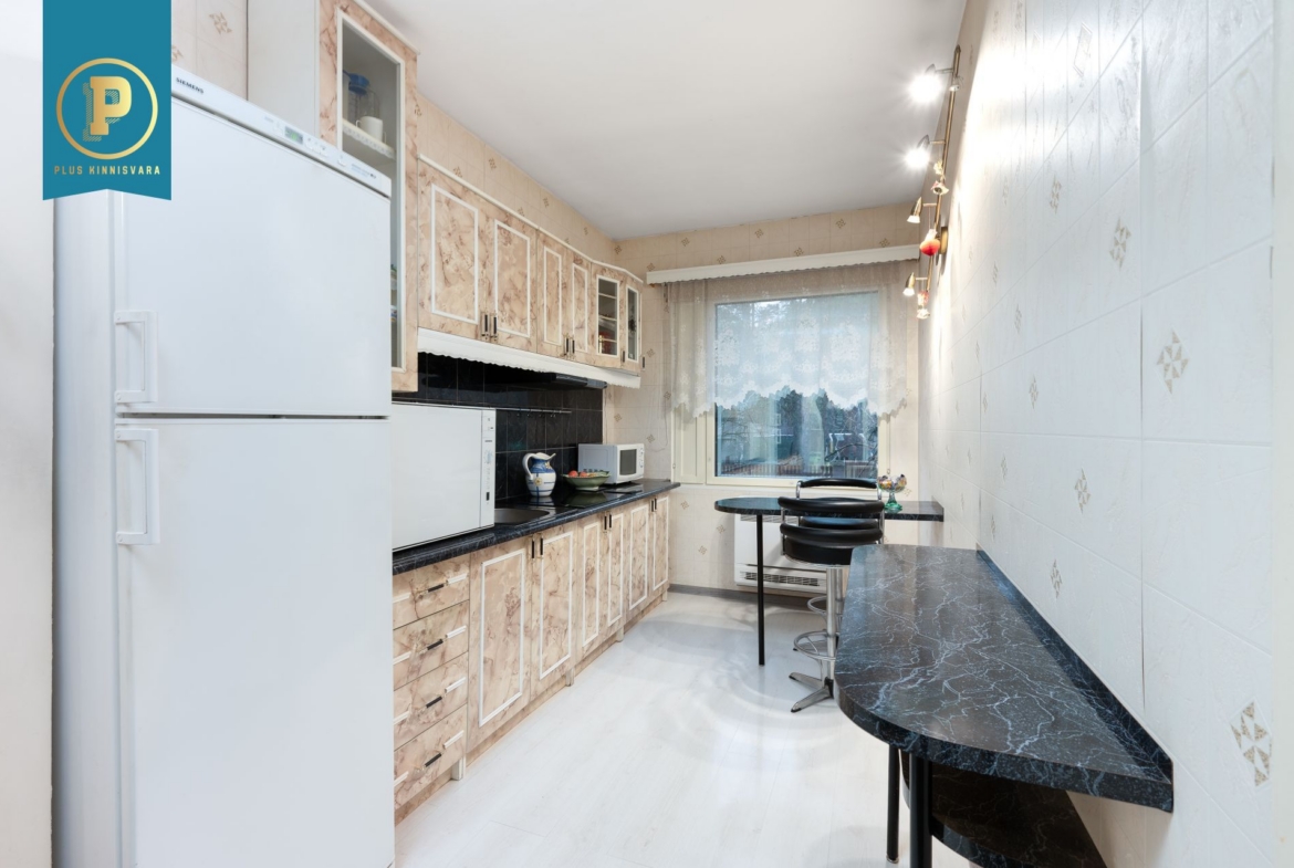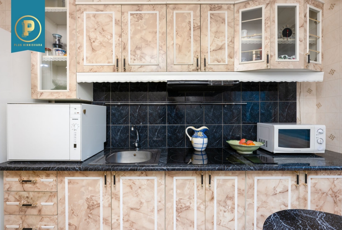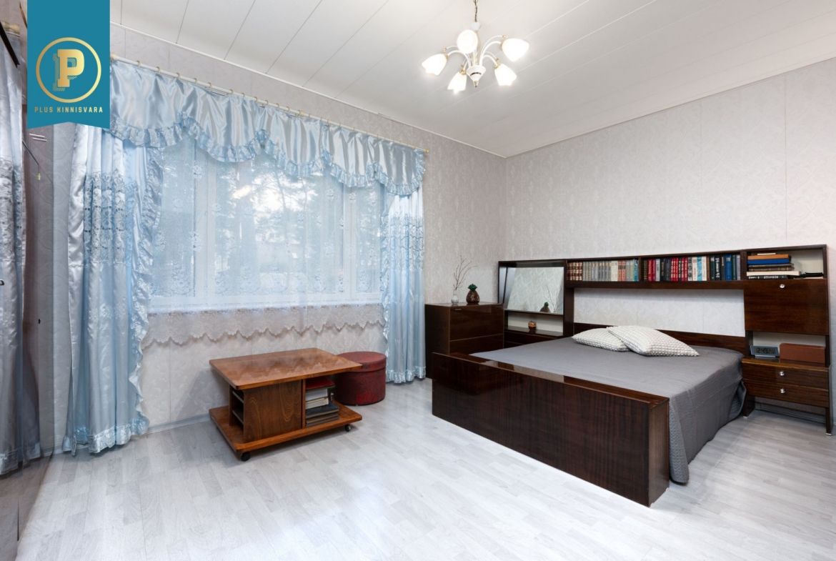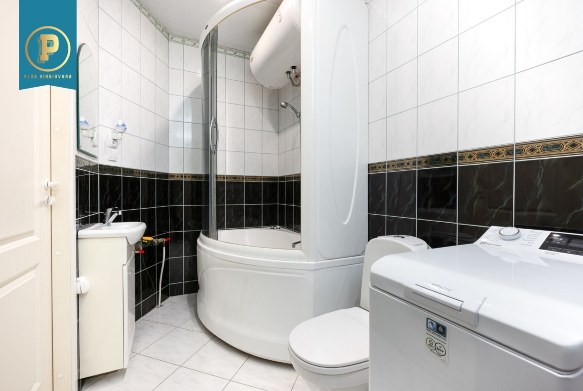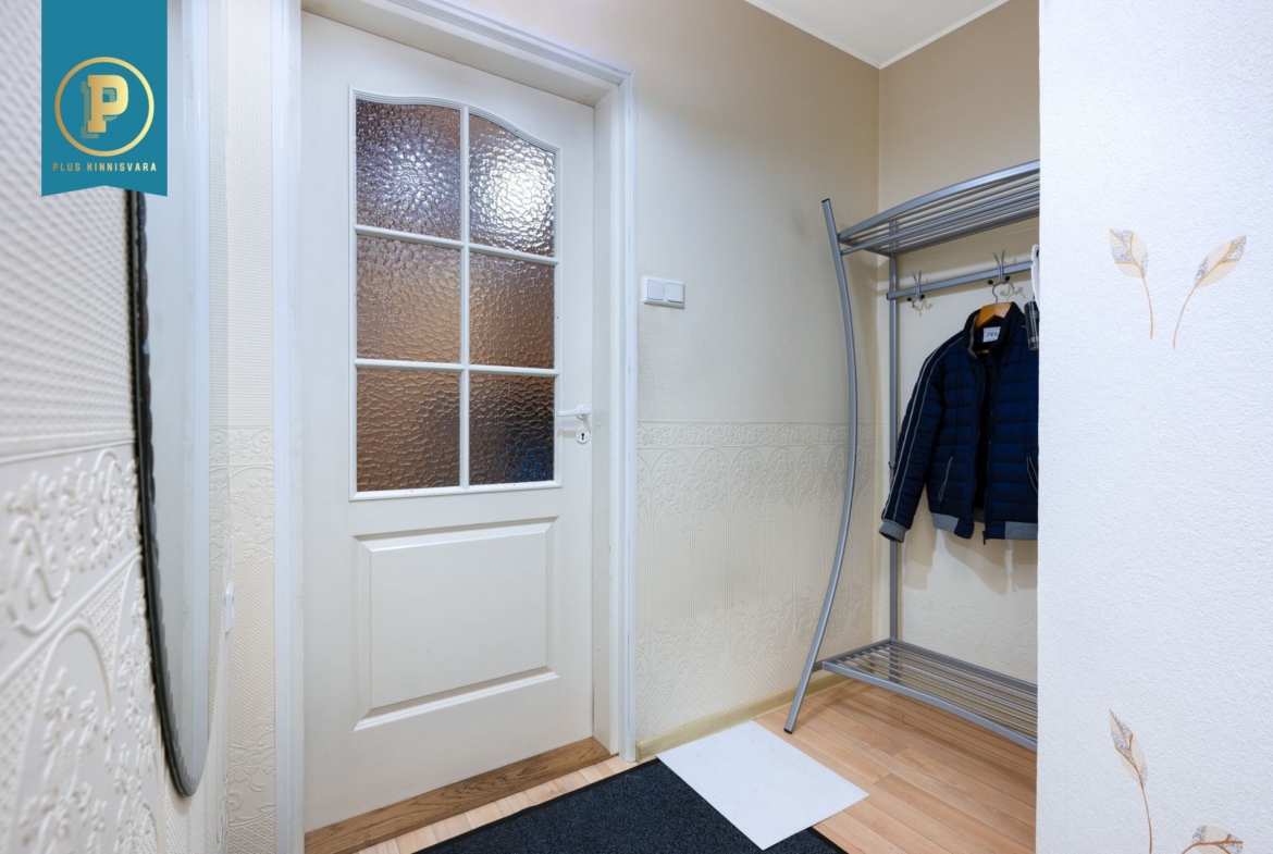 Korteris on avatud köök elutoaga, 2 magamistuba ning duširuum/vannituba. Väiksemas magamistoas on sisseehitatud peegelustega garderoobikapp, mis lisab toale avarust ja praktilisust. Duširuumis on põrandaküte. Korterit köetakse õhksoojuspumba ja ahjuga. Elektriarved on olnud talvel u. 130€ ja suvel u. 70€. Vee- ja kanalisatsiooniarved on talvel u. 25€ ja talvel 15€.
