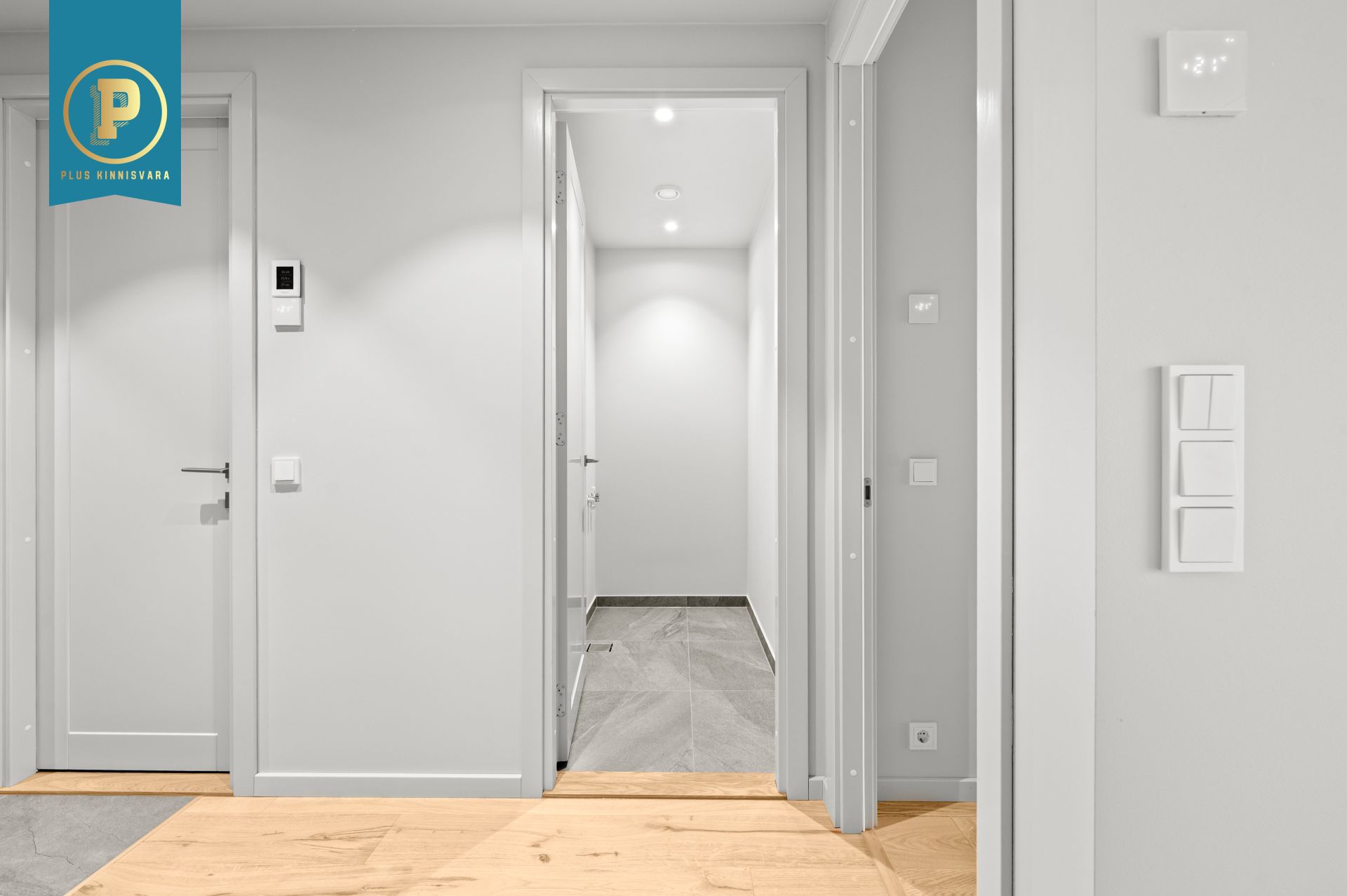 Siseviimistluses on kasutatud naturaalset tammeparketti, mis annab ruumidele sooja ja elegantse tunde. Seinad on värvitud heledates ja rahulikes toonides, mis loovad avara ja valge atmosfääri. Vannitubade seinad ja põrandad ning esiku põrand on plaaditud.