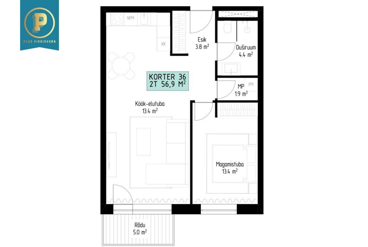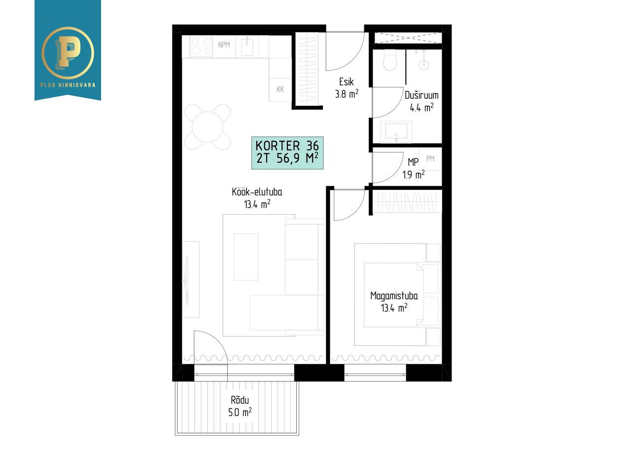 Korter nr 36 on väga mugava ja keskmisest suurema planeeringuga 2-toaline kodu, kus on esik, avatud köögiga elutuba, magamistuba, vannituba-tualett, rõdu ning lisaks veel majapidamisruum. Elutoast pääseb 5 m2 suurusele, suurepäraste vaadetega, rõdule – täiuslik koht hommikukohviks või õhtuseks lõõgastumiseks.