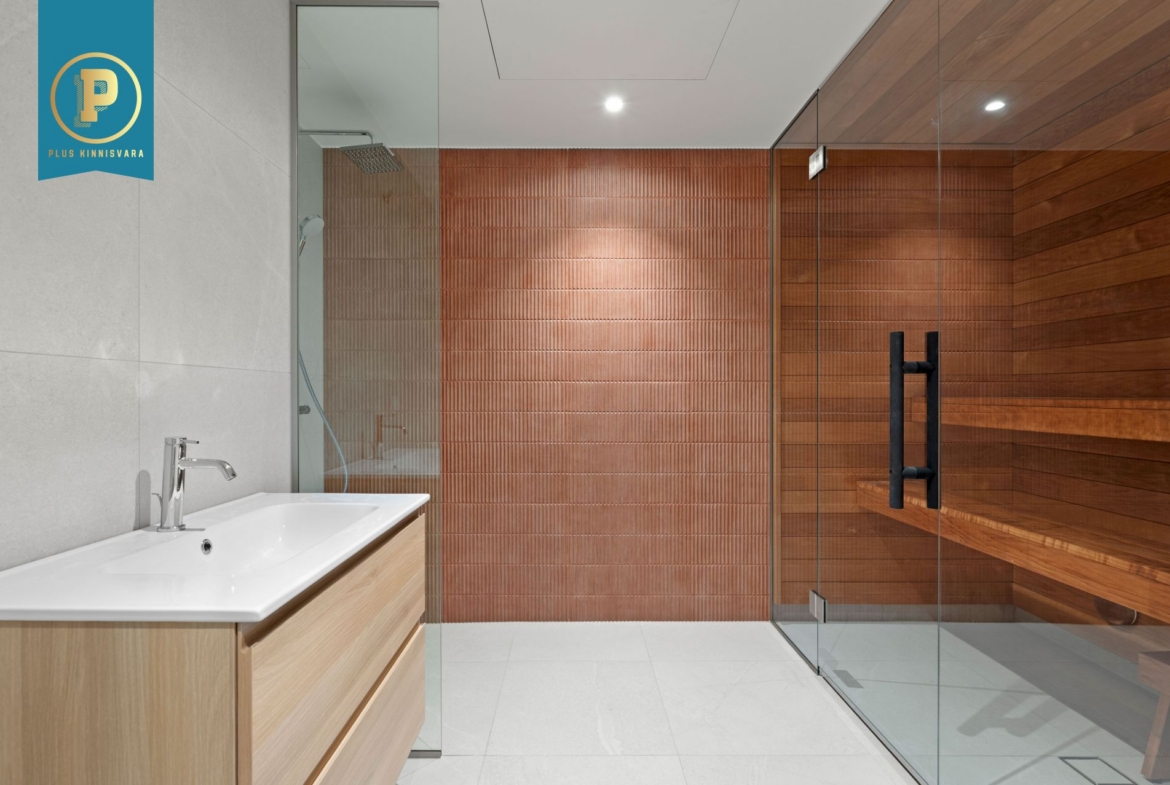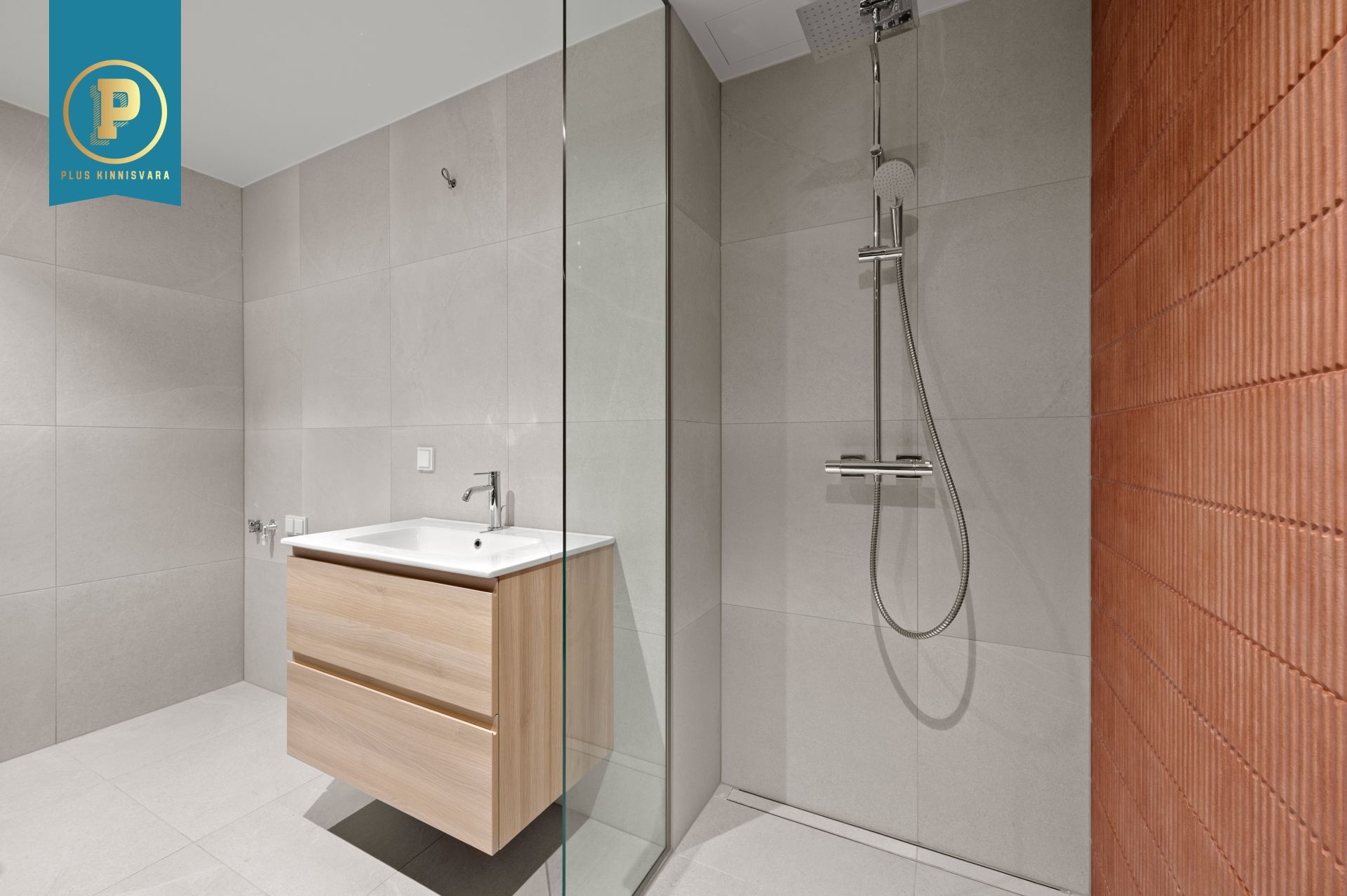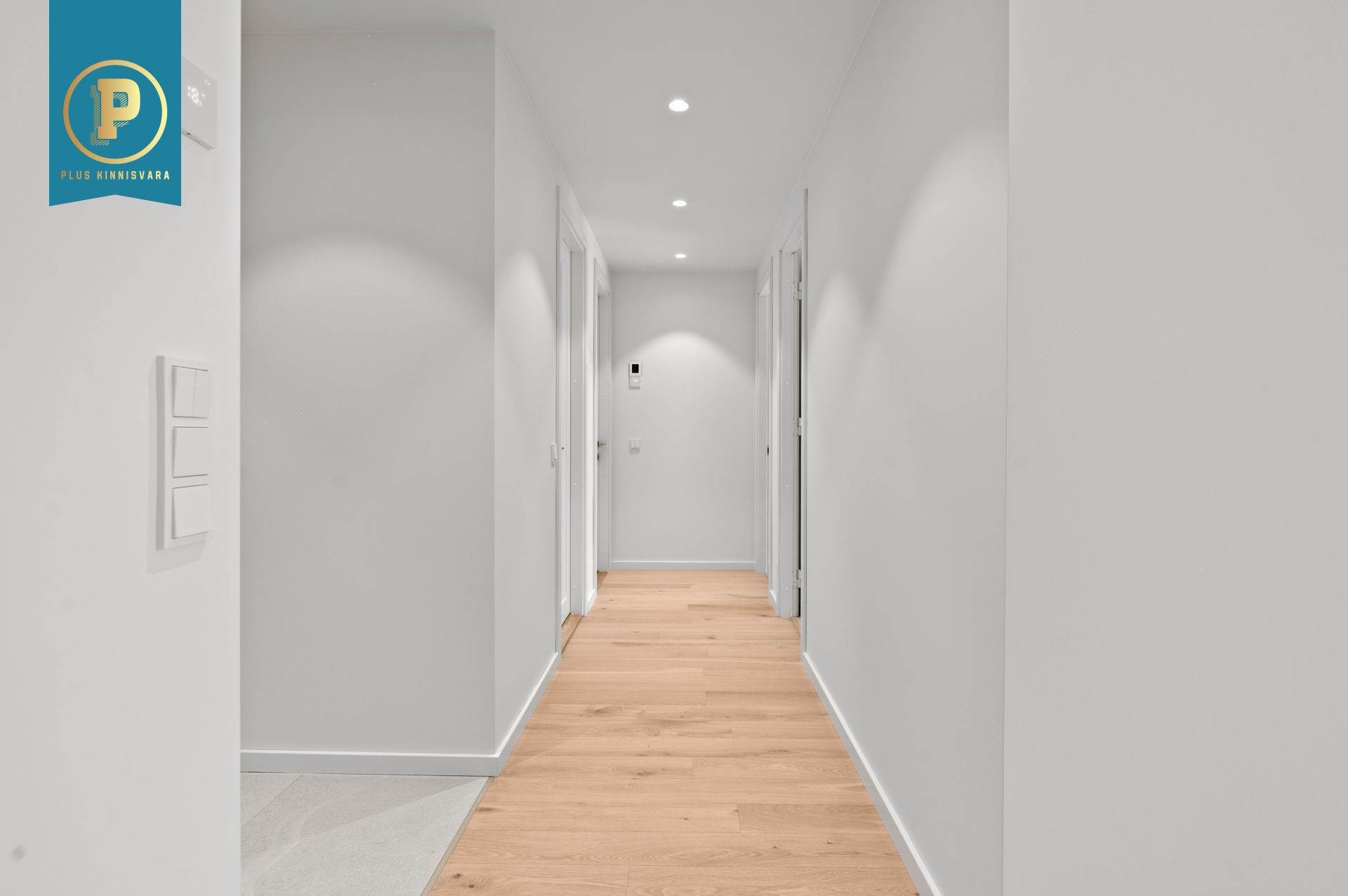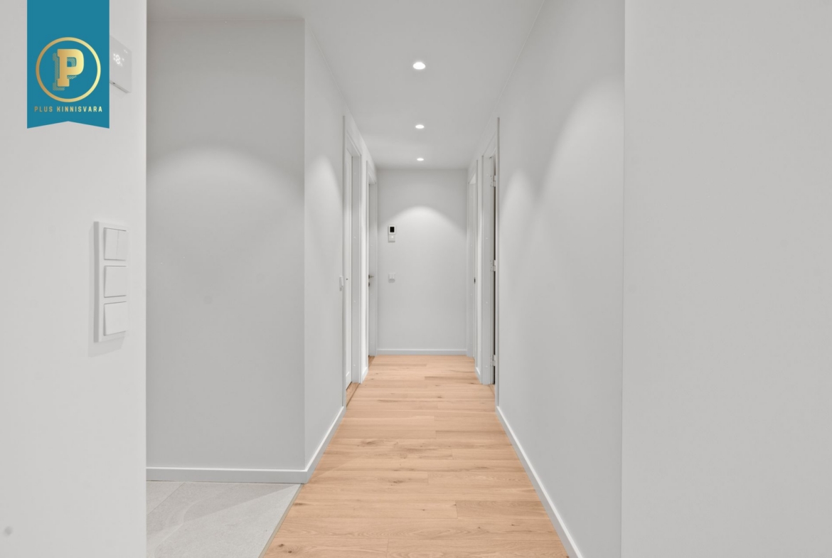 Siseviimistluses on kasutatud naturaalset tammeparketti, mis annab ruumidele sooja ja elegantse tunde. Seinad on värvitud heledates ja rahulikes toonides, mis loovad avara ja valge atmosfääri. Märgade ruumide seinad ja põrandad ning esiku põrand on plaaditud neutraalsetes toonides. Vannitoas on kasutatud aktsendiks terrakotaefektiga plaati, mis lisab modernsust ja erilisust.