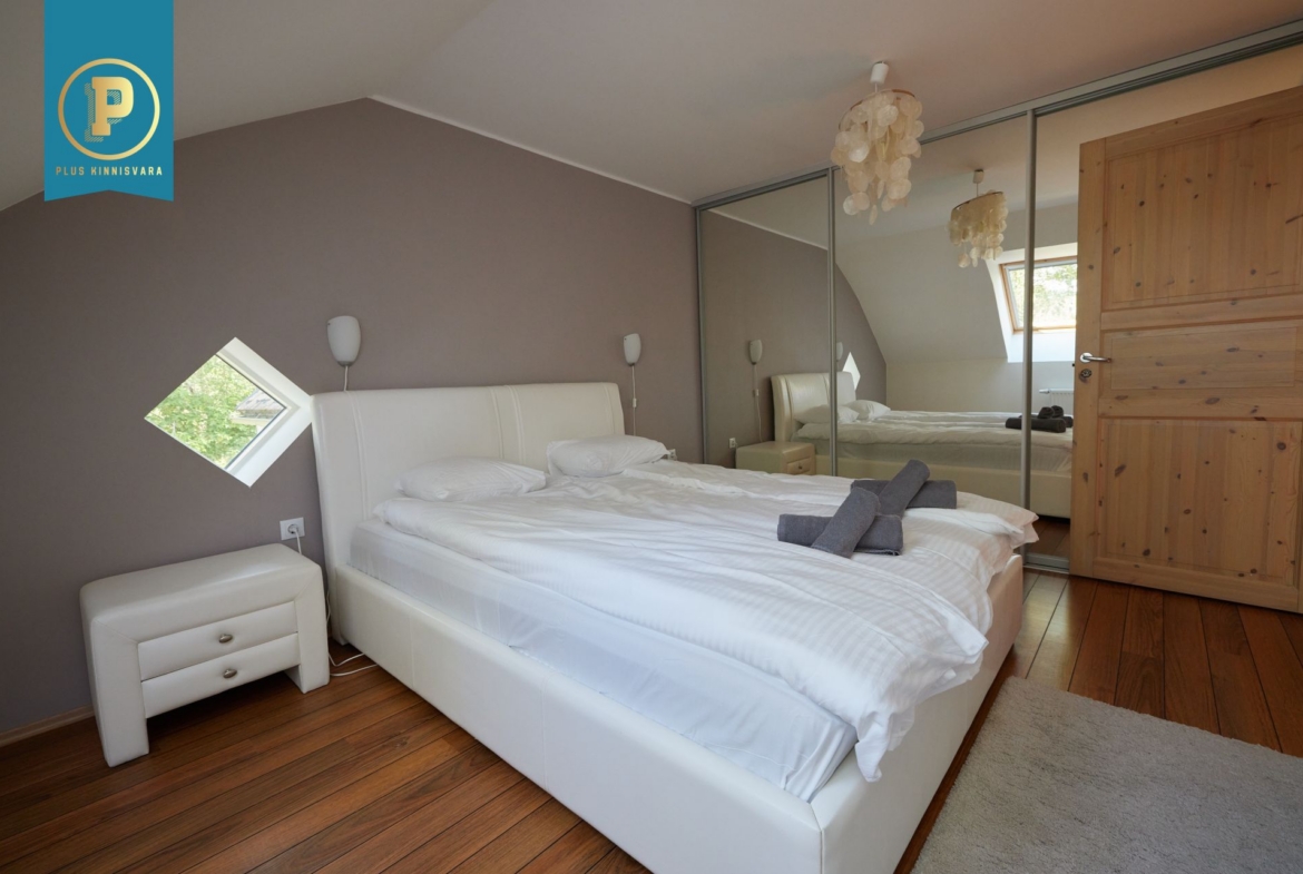 II korrusel kaks 2-toalist korterit 61,5m2 ja 57,4m2; III korrusel 3-toaline avar, merevaatega katusekorter suurusega 98.9m2. Kõikides korterites on elektrikerisega saun, konditsioneer, köök ja elamiseks vajalik mööbel. Aiaga piiratud hoovis on suur terrass, parkimiskohad 6-8 autole, väliköök koos pizza- ja suitsuahjuga.